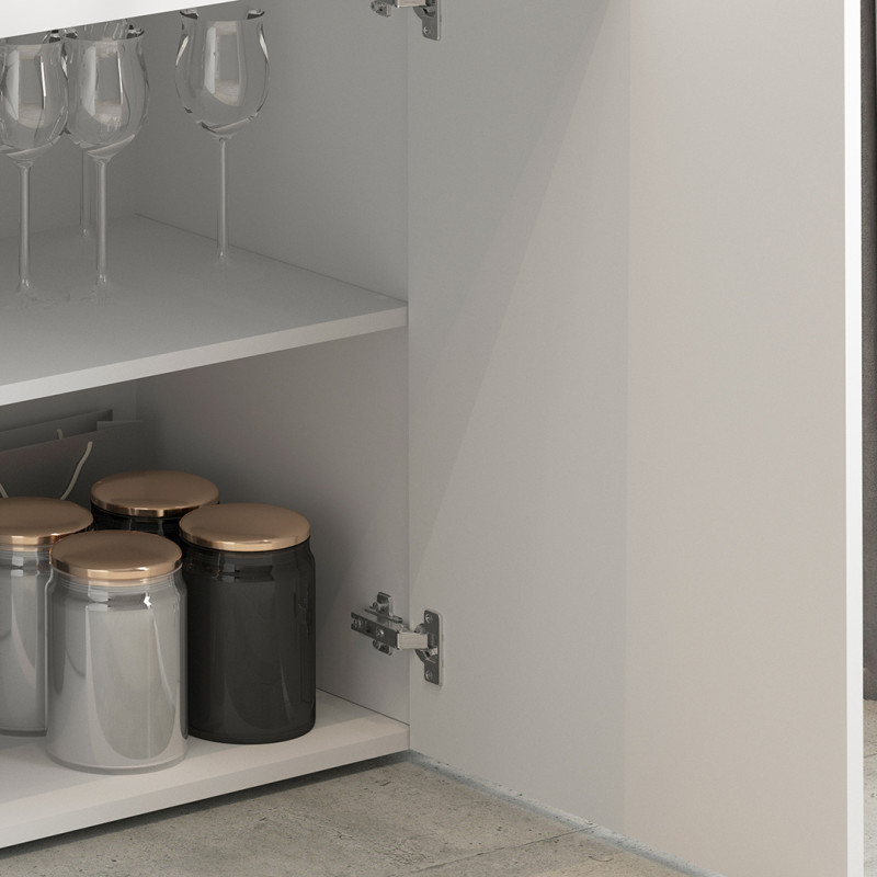 Côté rangement, ce buffet se révèle aussi pratique qu'élégant. Il dispose de deux portes battantes offrant un accès facile à un espace intérieur spacieux, complétées par un tiroir pratique pour ranger couverts, nappes ou petits accessoires du quotidien. Le piétement en PVC assure une stabilité optimale sur tout type de sol, tandis que la finition mélaminée garantit une résistance durable aux rayures et aux chocs du quotidien. Pour explorer d'autres options de rangement complémentaires, découvrez également notre sélection de bahut, buffet et enfilade disponibles sur notre site.