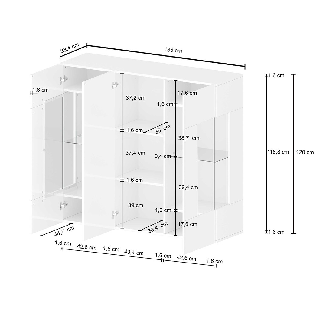 Avec son design épuré et sa finition laquée blanc brillant, ce buffet haut de la marque Deladeco incarne parfaitement l'esthétique moderne et raffinée que l'on recherche aujourd'hui dans nos intérieurs. Fabriqué en Italie avec un savoir-faire reconnu, il séduit dès le premier regard par ses lignes droites et sa surface lumineuse qui reflète la lumière avec élégance. Ses dimensions généreuses — 135 cm de longueur, 120 cm de hauteur et 40 cm de profondeur — lui confèrent une présence affirmée sans pour autant alourdir visuellement la pièce.