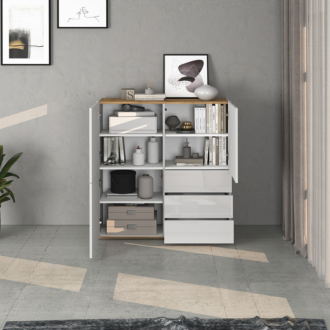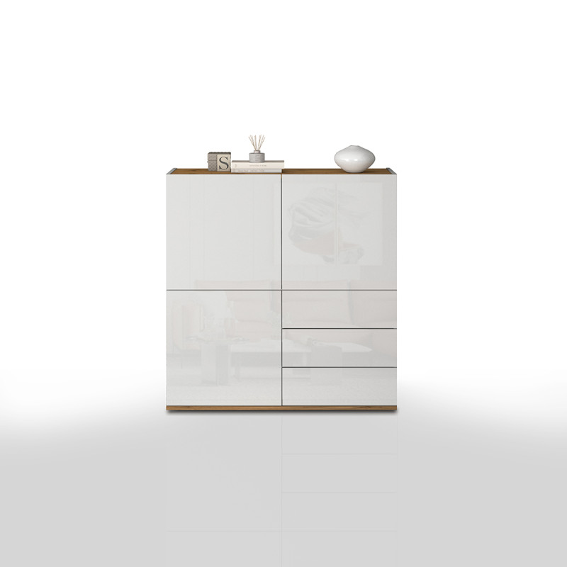 Imaginez un meuble qui allie esthétique contemporaine et praticité du quotidien : le Buffet haut moderne blanc/chêne wotan Grana de la marque Deladeco est exactement cela. Conçu pour les particuliers en quête d'un intérieur soigné, ce buffet/bahut au style moderne affiche des lignes épurées et une bicoloration blanc/chêne wotan qui s'intègre harmonieusement dans tout espace de vie. Fabriqué en Italie avec un savoir-faire reconnu, il incarne l'excellence du mobilier européen contemporain.