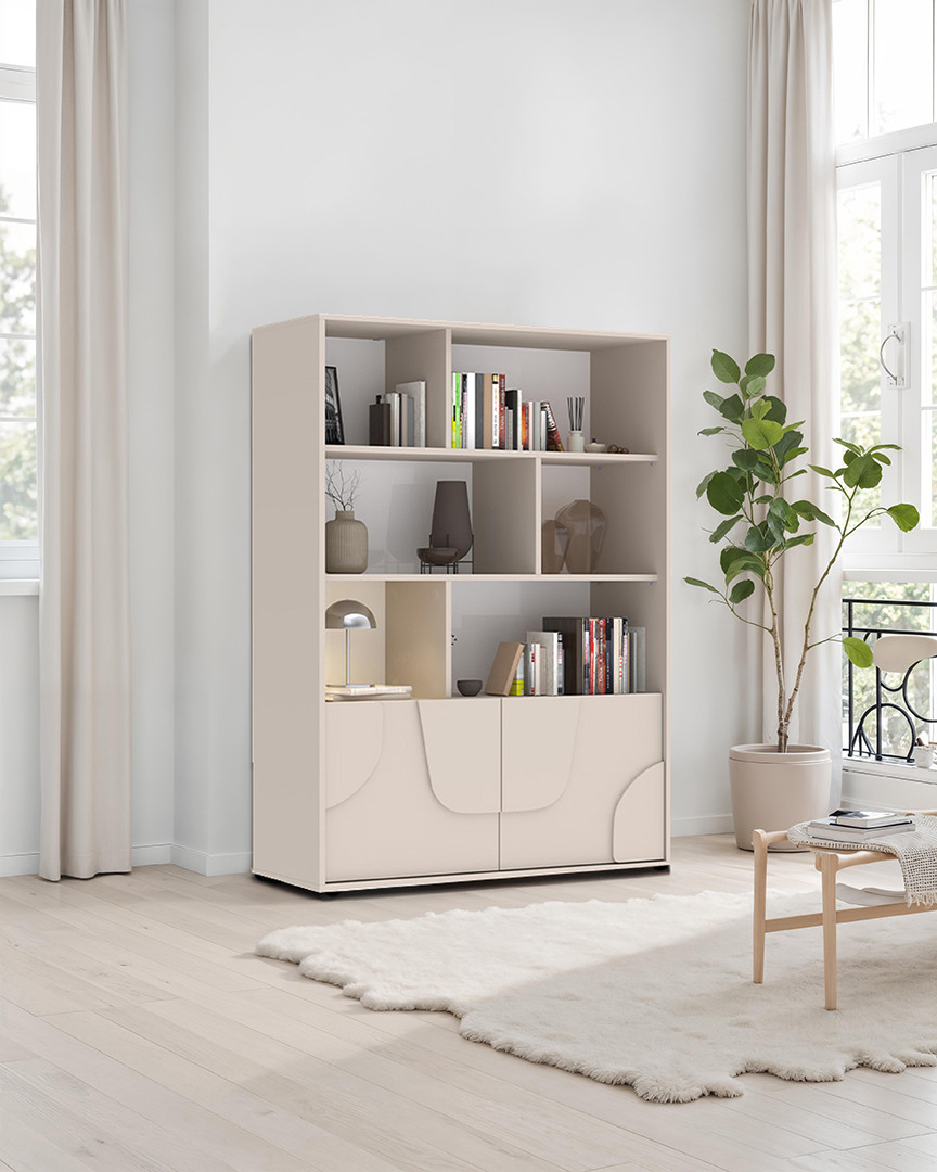 Ce meuble n'a pas de poignées. Ouvrez les tiroirs ou armoires avec une simple pression du doigt.