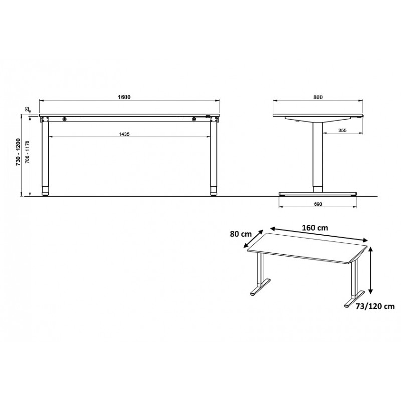Large de 80 cm et long de 160 cm, le bureau assis-debout Louisiane dispose d'une hauteur modulable : grâce à une unité de commande située sous le plateau, vous pouvez au choix le monter jusqu'à 120 cm, ce qui vous permet de travailler en position debout, ou au contraire le descendre à 73 cm de hauteur pour une position assise. Le raccordement se fait grâce à un câble d'alimentation et le plateau peut supporter un poids allant jusqu'à 80kg.