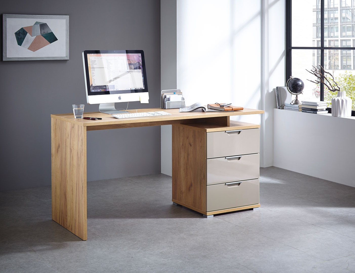 Classique et élégant à la fois, le bureau contemporain Africa s'intégrera parfaitement dans de nombreux intérieurs grâce à son coloris tendance. Sa structure est fabriquée en panneaux de particules mélaminés de première qualité avec chants ABS. Les façades des tiroirs sont en MDF et recouvertes d'une laque brillante. Il se compose d'un large plan de travail et de trois tiroirs en métal dotés de poignées incrustées en métal. Il vous sera possible de positionner les tiroirs à gauche ou à droite lors du montage.