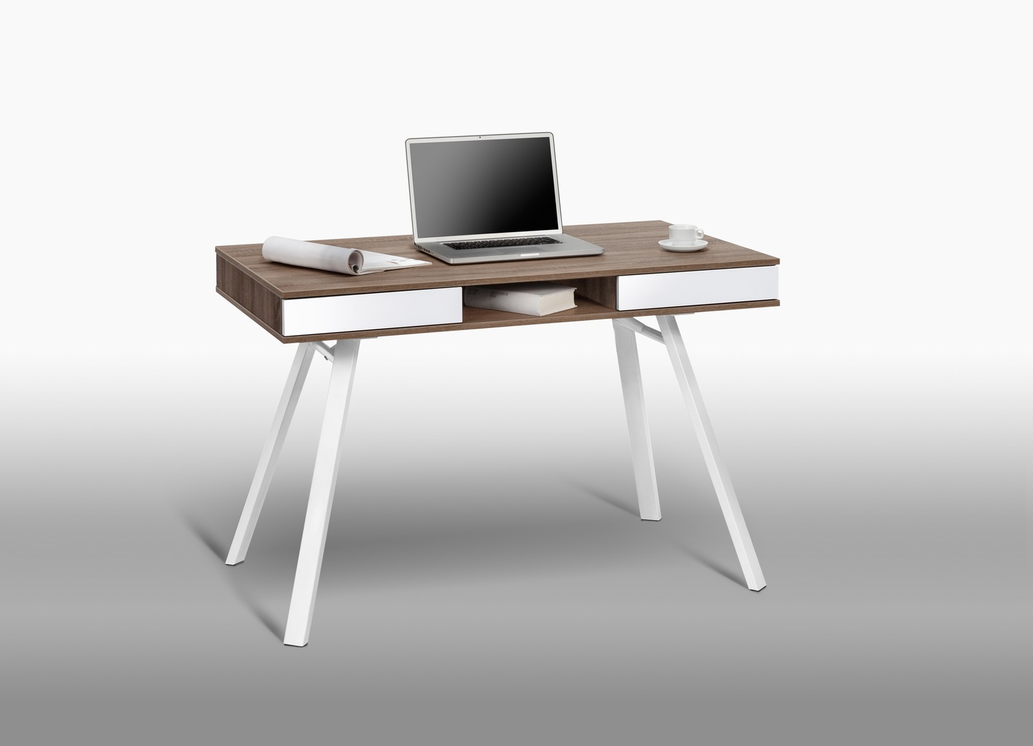 Le bureau contemporain Faro vous charmera par sa forme originale et son style rétro. Sa structure est fabriquée en panneaux de particules mélaminés anti-rayures dotés de chants ABS. Il se compose d'une niche centrale et de 2 tiroirs montés sur coulisses métalliques. Une simple pression sur les tiroirs leur permettra de s'ouvrir. Un emplacement pour le passage des câbles est prévu dans la partie arrière.