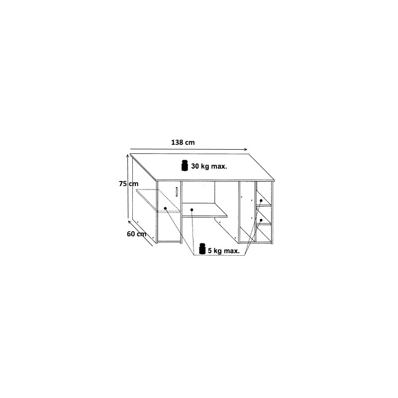 Le bureau contemporain Armel vous offrira un bel espace de travail ainsi qu'un bel espace de rangement. Sa structure est fabriquée en panneaux de particules mélaminés de première qualité. Il se compose d'un large plan de travail, d'une étagère pour l'imprimante, d'une porte comprenant 1 étagère réglable en hauteur et de nombreux espaces de rangement. Les étagères pourront supporter un poids de 5 kg. Le plateau pourra supporter quant à lui un poids de 30 kg.