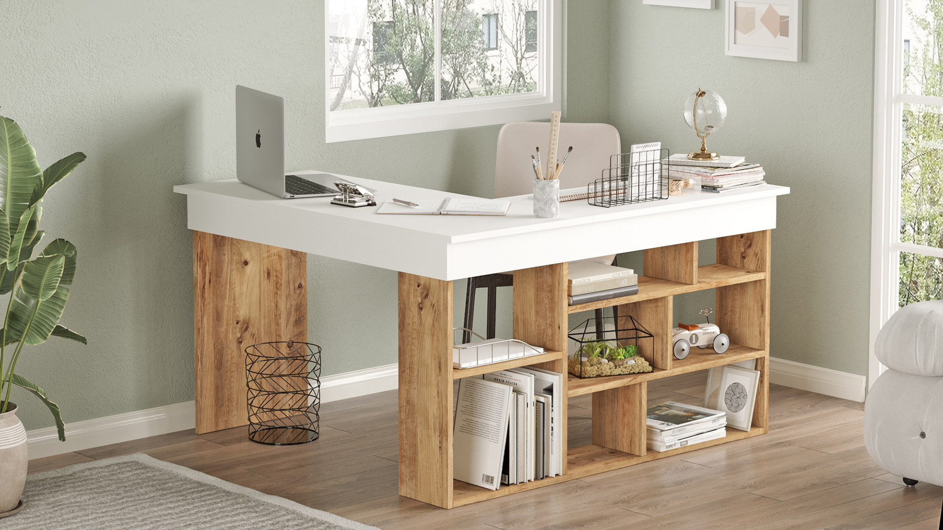 Aménager un coin bureau à la fois esthétique et pratique est désormais possible grâce au bureau d'angle Studine de la marque Deladeco. Avec son coloris Blanc/Pin Atlantic particulièrement tendance, ce meuble apporte une touche de modernité et de fraîcheur à votre intérieur. Ses dimensions généreuses — 129 cm de longueur pour 120 cm de profondeur et 72 cm de hauteur — offrent une surface de travail spacieuse, idéale pour s'installer confortablement devant son ordinateur et disposer de tout le matériel nécessaire à portée de main. Son design épuré s'intègre harmonieusement dans un bureau à domicile, une chambre ou tout espace dédié au travail.