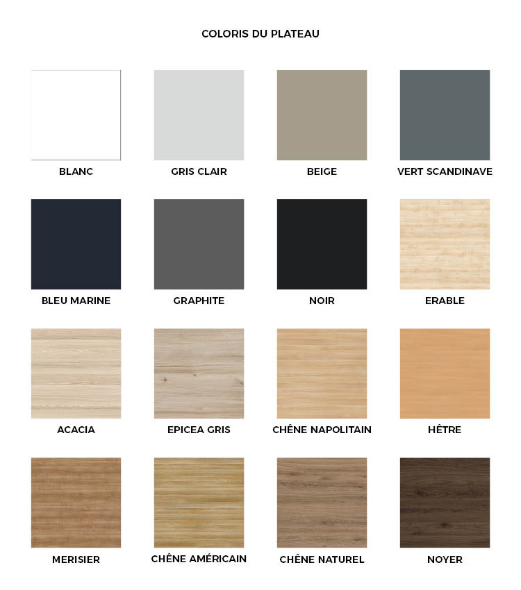 | Coloris du piètement | Blanc, aluminium, graphite ou noir |
