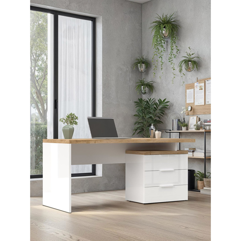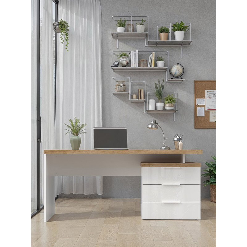 Bureau droit moderne blanc laqué/chêne Daisy | ![]() | Longueur: 138 ou 160 cm Hauteur: 75 cm Profondeur: 75 cm | En stock 3 à 4 semaines | 189 € 99 | ||