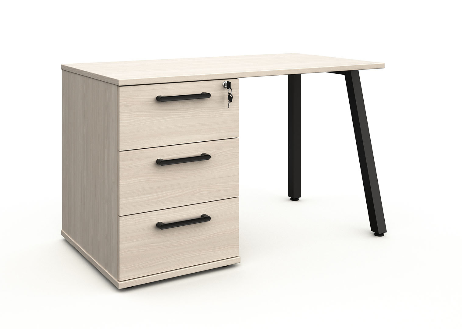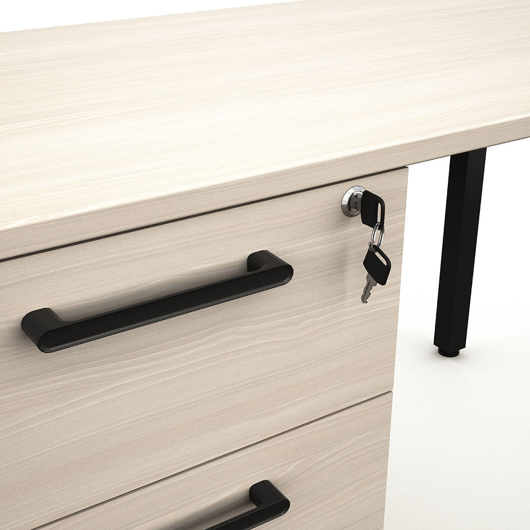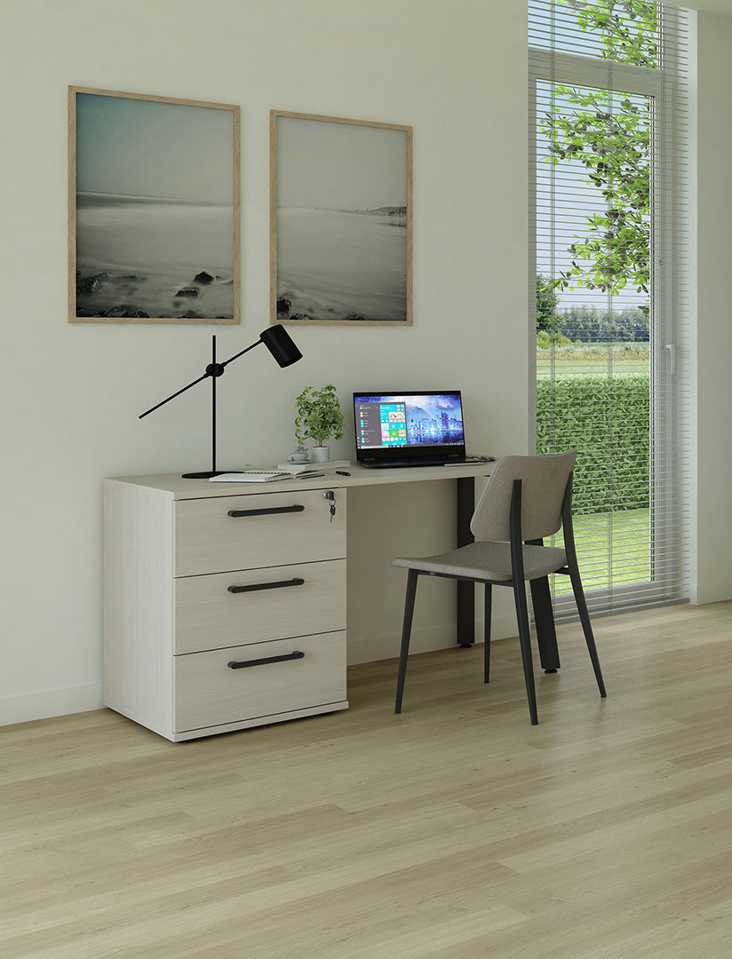 Ce bureau droit enfant se distingue par son design épuré et ses lignes contemporaines qui plaisent autant aux parents qu'aux jeunes utilisateurs. D'une hauteur de 73 cm et d'une profondeur de 64 cm, il propose des dimensions parfaitement adaptées à la morphologie des enfants et adolescents. Le piétement métallique assure une solidité à toute épreuve, tandis que les poignées en métal ajoutent une note industrielle élégante. Les trois tiroirs intégrés offrent de précieux rangements pour organiser cahiers, fournitures scolaires et petits objets personnels, permettant ainsi de maintenir un plan de travail toujours bien ordonné.