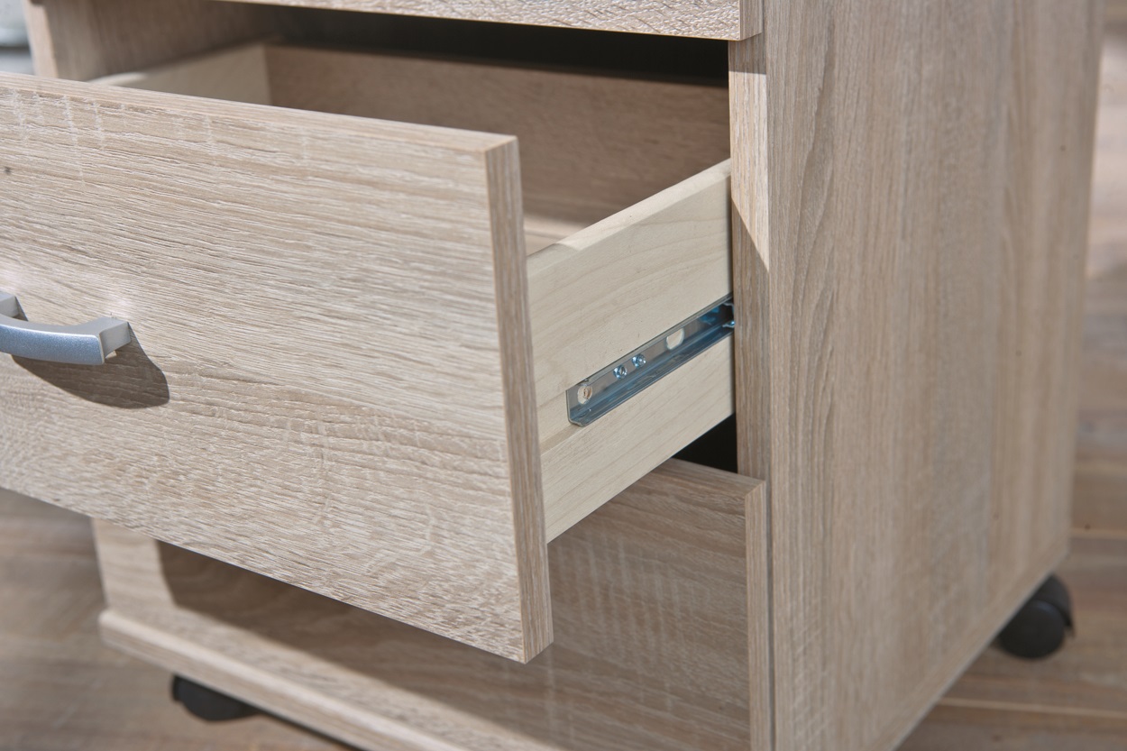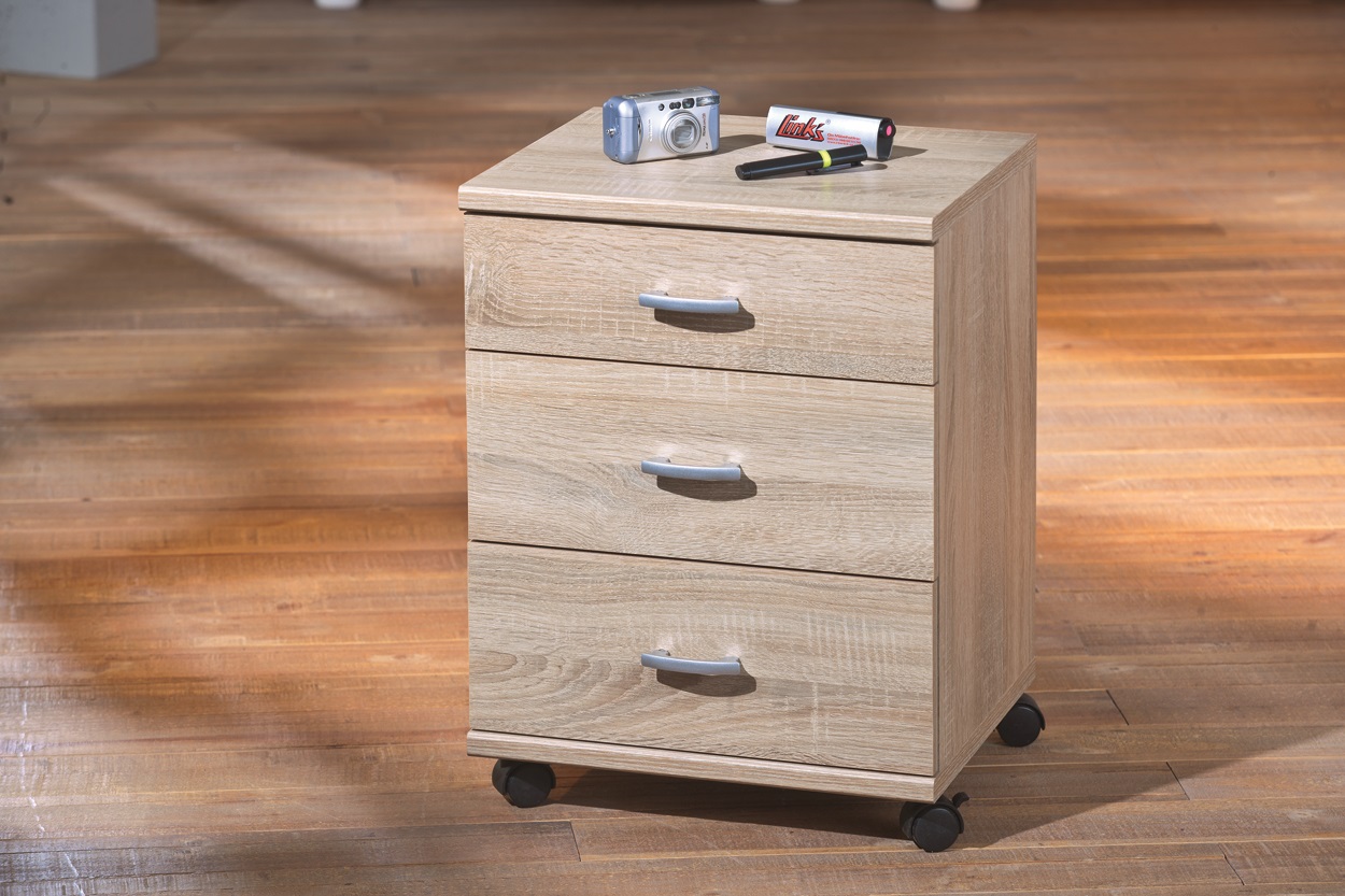 Le caisson de bureau contemporain Polka vous offrira un espace de rangement supplémentaire appréciable dans votre bureau. Sa structure est fabriquée en panneaux de particules mélaminés de 16 mm d'épaisseur. Il se compose de 3 tiroirs montés sur coulisses métalliques. Montés sur 4 roulettes PVC, vous pourrez le déplacer facilement à l'endroit désiré.
