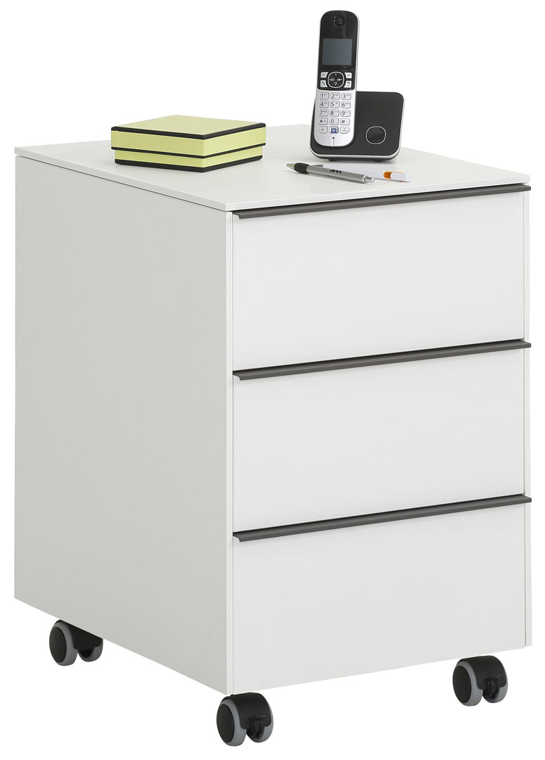 Indispensable pour un rangement organisé, le caisson de bureau contemporain Fergus offrira un espace de rangement supplémentaire appréciable. Sa structure est fabriquée en panneaux de particules mélaminés de première qualité anti-rayures avec chants ABS. Le tiroir du haut dispose d'une ouverture totale. Les deux autres tiroirs sont dotés de glissières avec fermeture amortie. Les poignées son en métal. Monté sur 4 roulettes dont 2 avec freins, le caisson de bureau Fergus sera facile à déplacer.