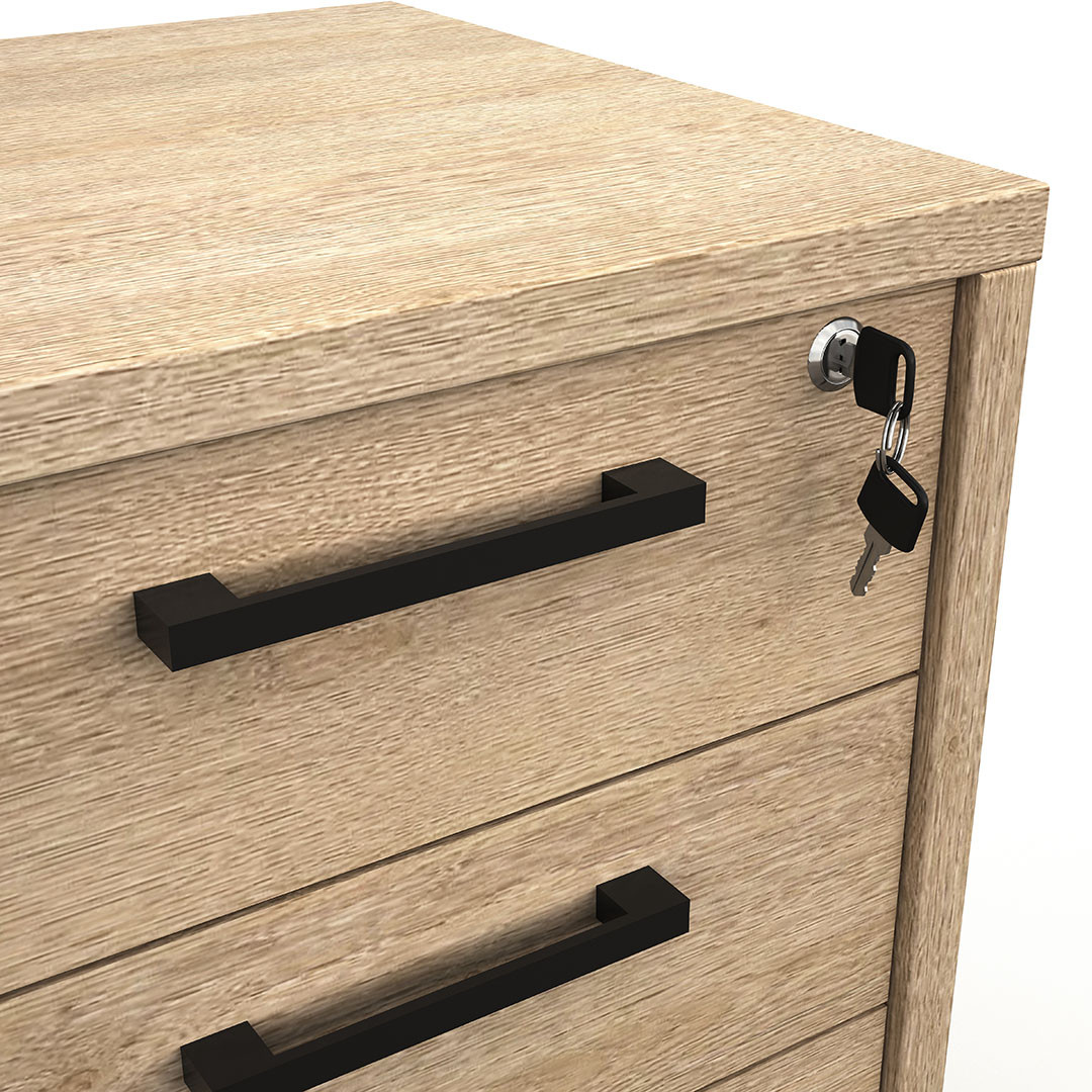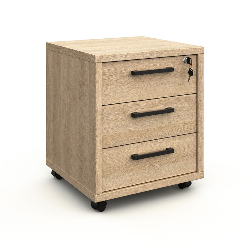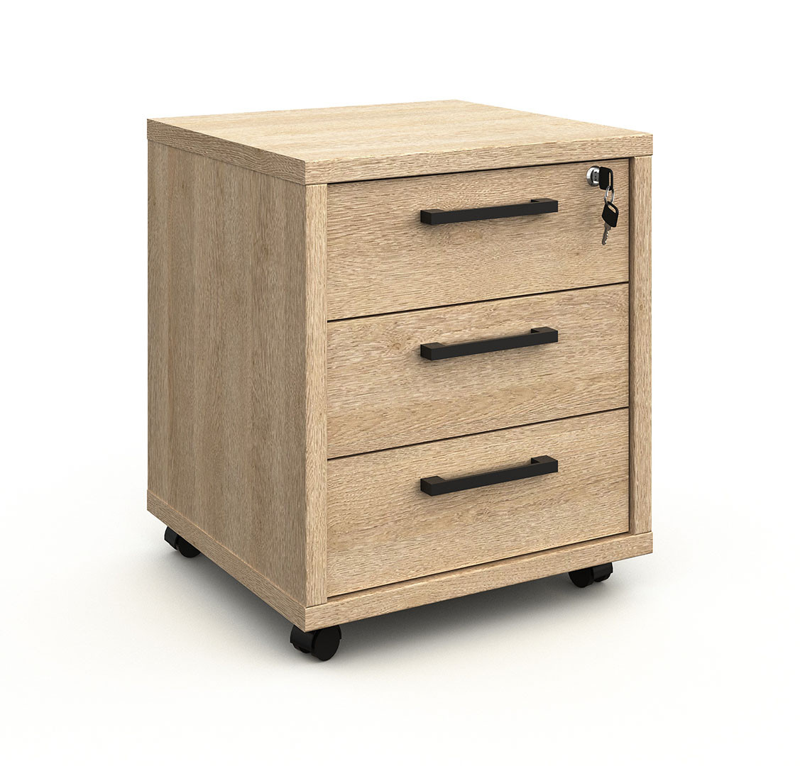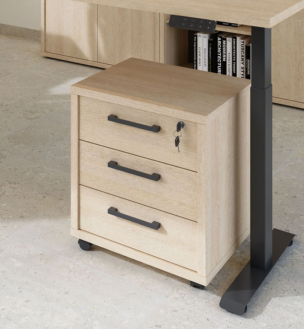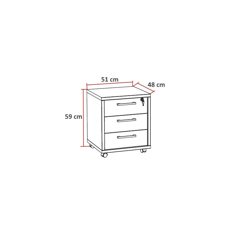 Équipé de trois tiroirs spacieux et d’un système de fermeture à clé, ce caisson à roulettes assure la sécurité de vos documents confidentiels tout en facilitant l’organisation quotidienne. Son piètement composé de quatre roulettes noires permet un déplacement facile d’un point à un autre de la pièce, sans effort. Que ce soit pour un usage à domicile ou dans un espace professionnel, ce caisson de bureau est un allié incontournable pour garder vos effets personnels bien organisés et à portée de main.