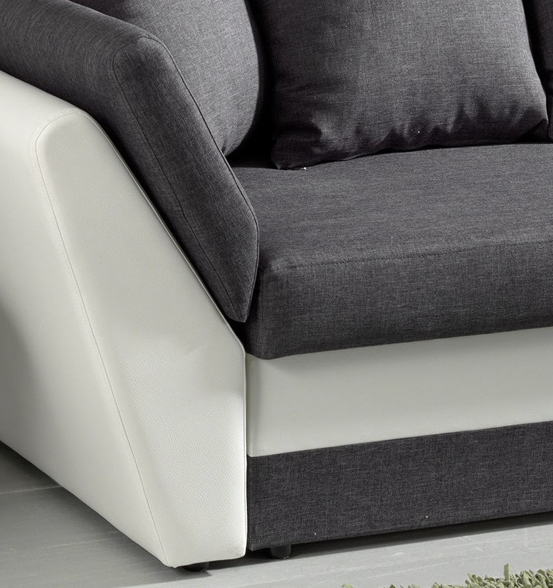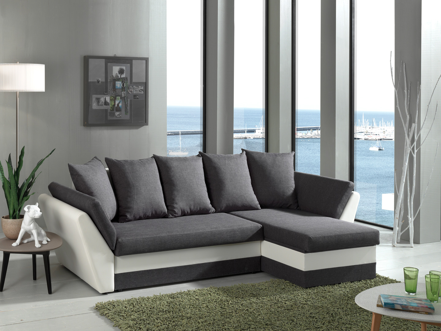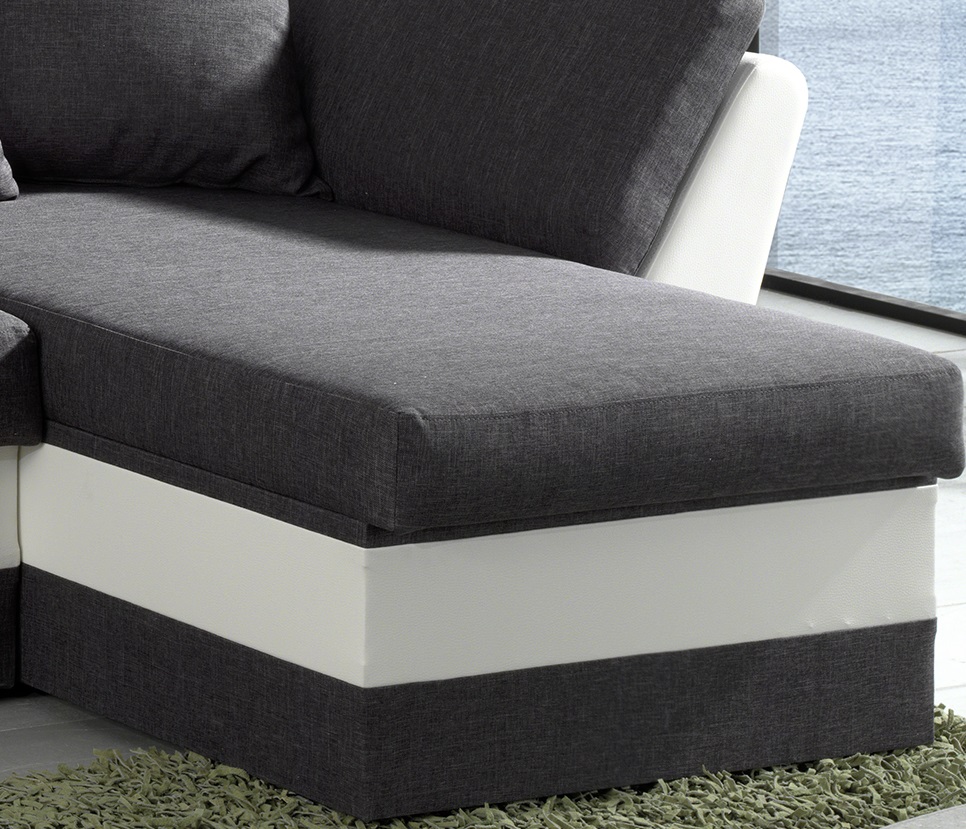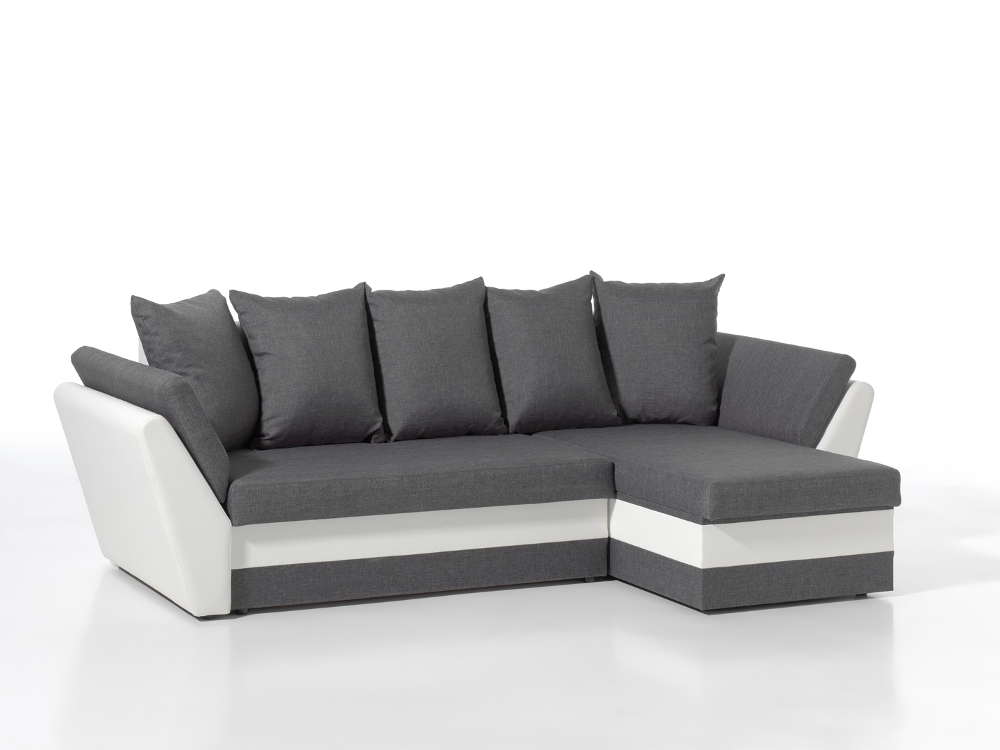 Le canapé d'angle contemporain Enola vous séduira par ses formes parfaites et le mélange agréable de ses coloris. Sa structure est fabriquée en bois massif (pin) et panneaux de particules de haute qualité. L'assise est composée de mousse polyuréthane de 9 cm d'épaisseur. Le dossier est composé de 5 coussins déhoussables garnis de flocons de mousse polyuréthane. Le coffre sous l'assise offrira un espace de rangement appréciable. Ses 14 pieds en PVC garantiront une parfaite stabilité. Facile à transformer, le canapé Enola vous offrira un couchage d'appoint très confortable. Il vous sera également possible de positionner la méridienne à droite ou à gauche.