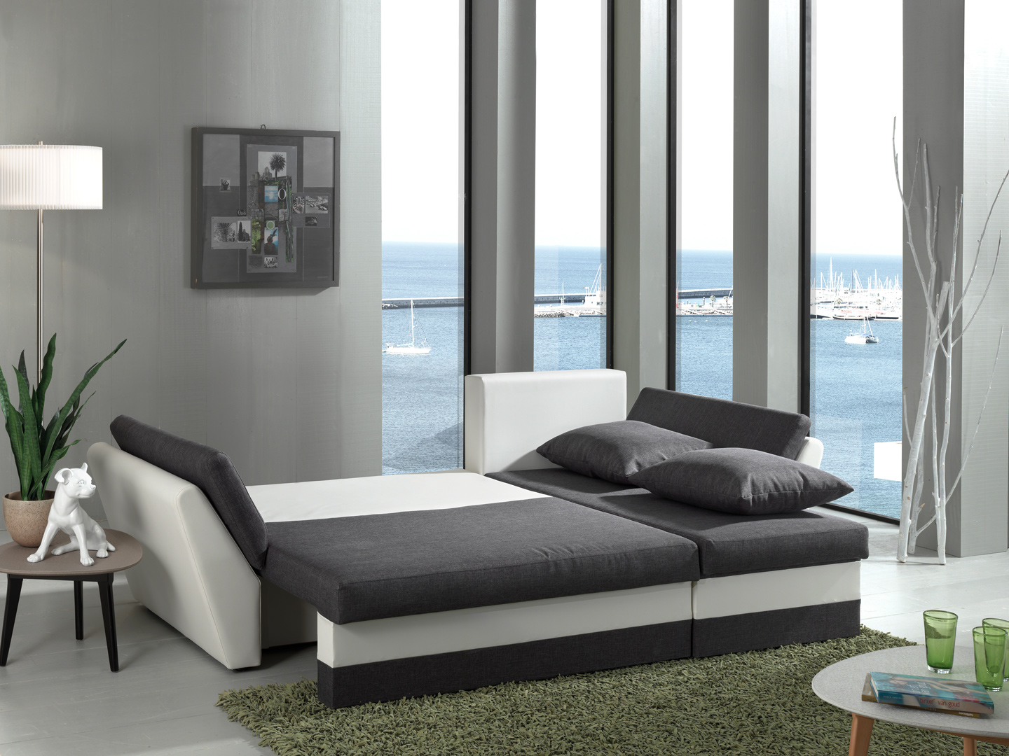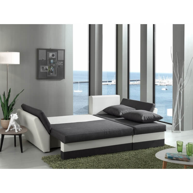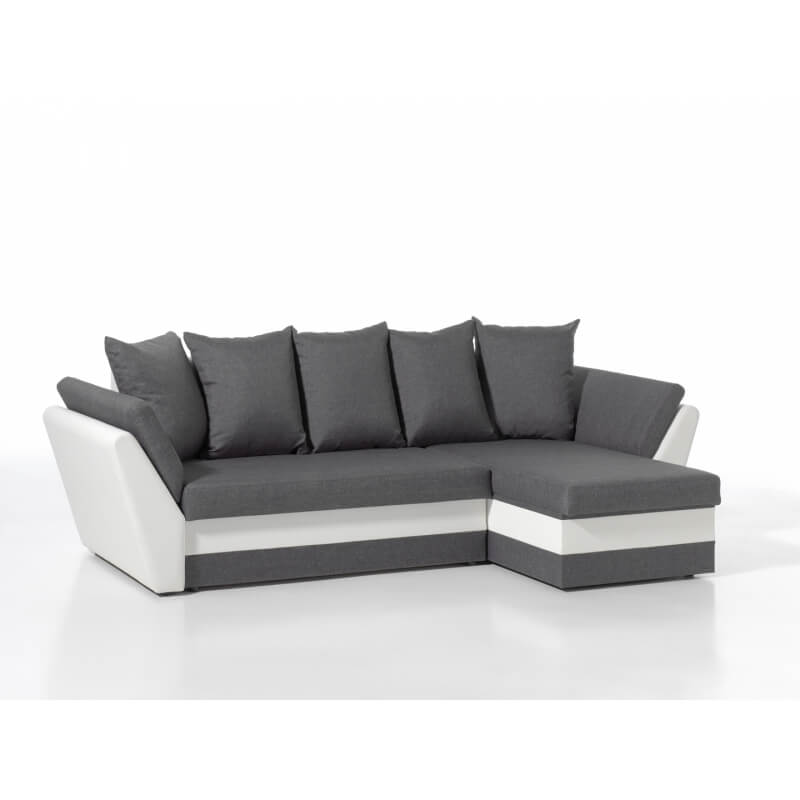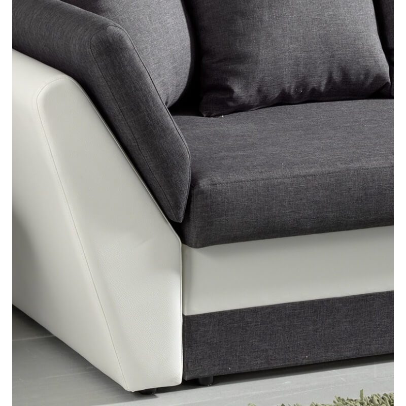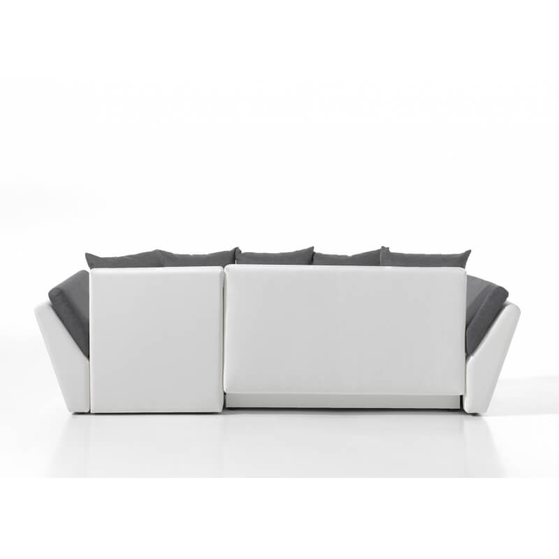 Le canapé d'angle contemporain Enola vous séduira par ses formes parfaites et le mélange agréable de ses coloris. Sa structure est fabriquée en bois massif (pin) et panneaux de particules de haute qualité. L'assise est composée de mousse polyuréthane de 9 cm d'épaisseur. Le dossier est composé de 5 coussins déhoussables garnis de flocons de mousse polyuréthane. Le coffre sous l'assise offrira un espace de rangement appréciable. Ses 14 pieds en PVC garantiront une parfaite stabilité. Facile à transformer, le canapé Enola vous offrira un couchage d'appoint très confortable. Il vous sera également possible de positionner la méridienne à droite ou à gauche.