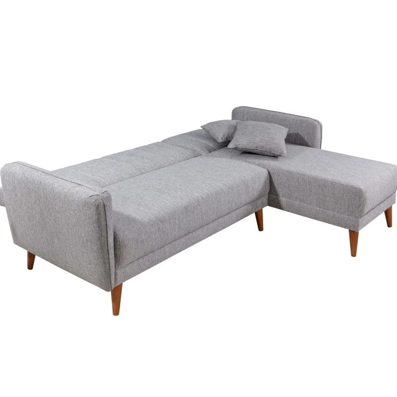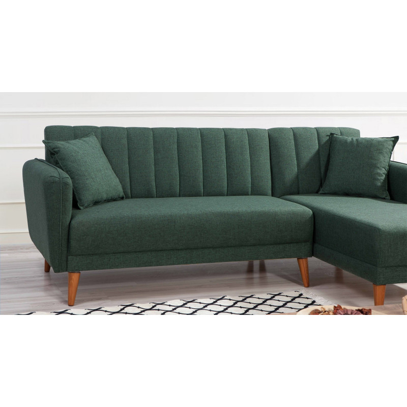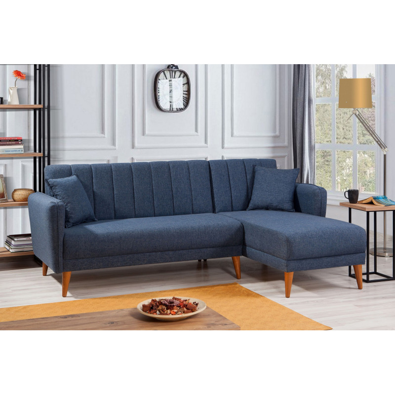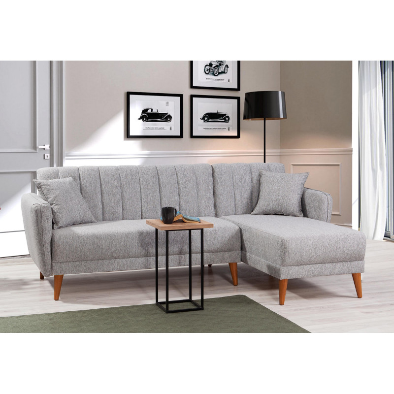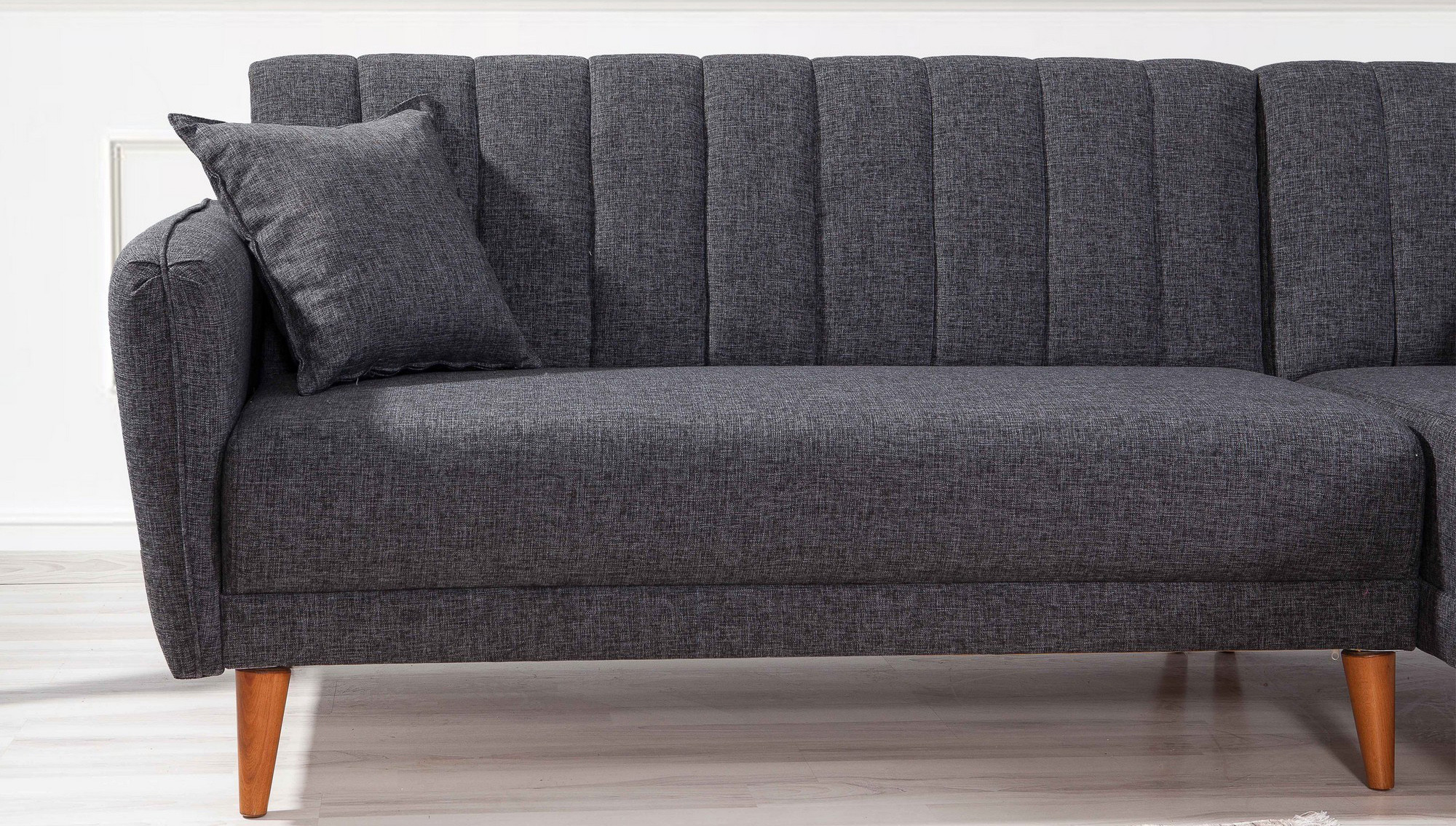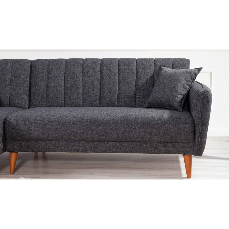 Les dimensions généreuses de ce canapé d'angle convertible permettent d'accueillir confortablement 3 personnes et plus avec ses 225 cm de longueur. L'assise profonde de 56 cm et sa hauteur de 43 cm offrent une position assise ergonomique pour des moments de détente prolongés. Le dossier culmine à 85 cm pour un maintien dorsal parfait, tandis que la profondeur variable (80 à 150 cm selon la configuration) s'adapte à vos besoins d'aménagement. Les pieds en bois de 17 cm apportent une élévation subtile qui facilite l'entretien tout en renforçant le caractère moderne de l'ensemble.