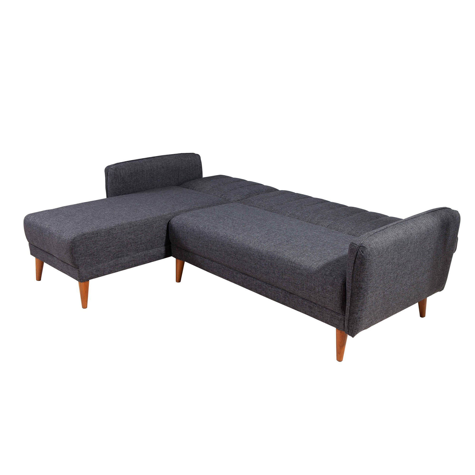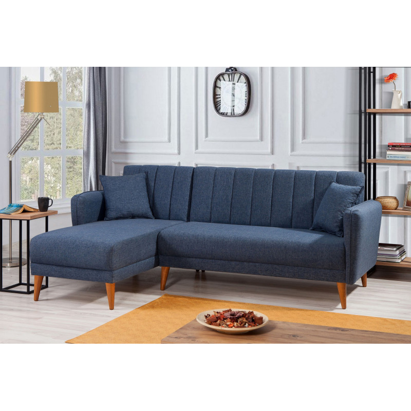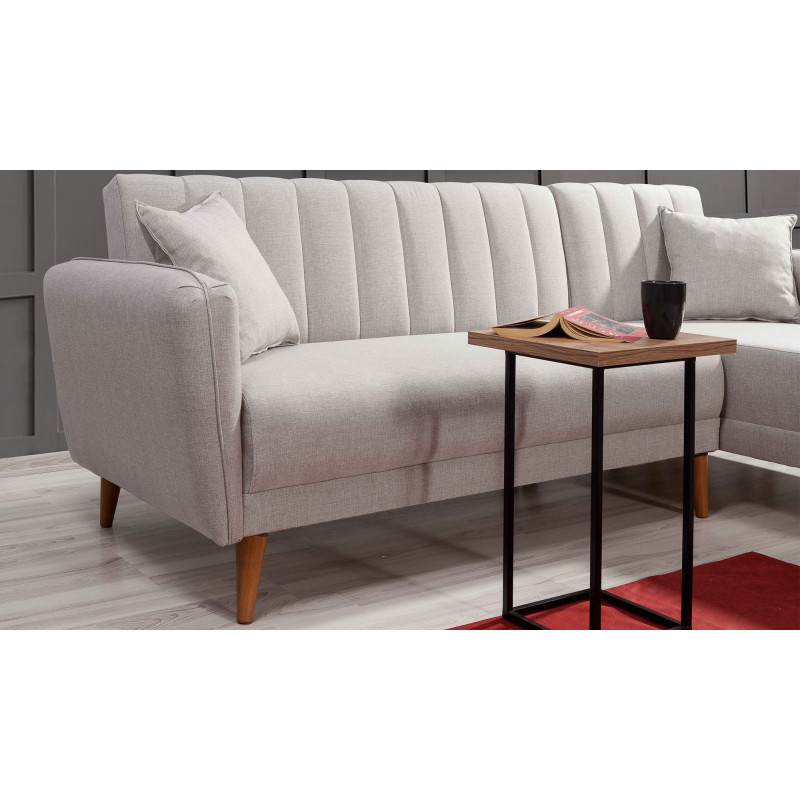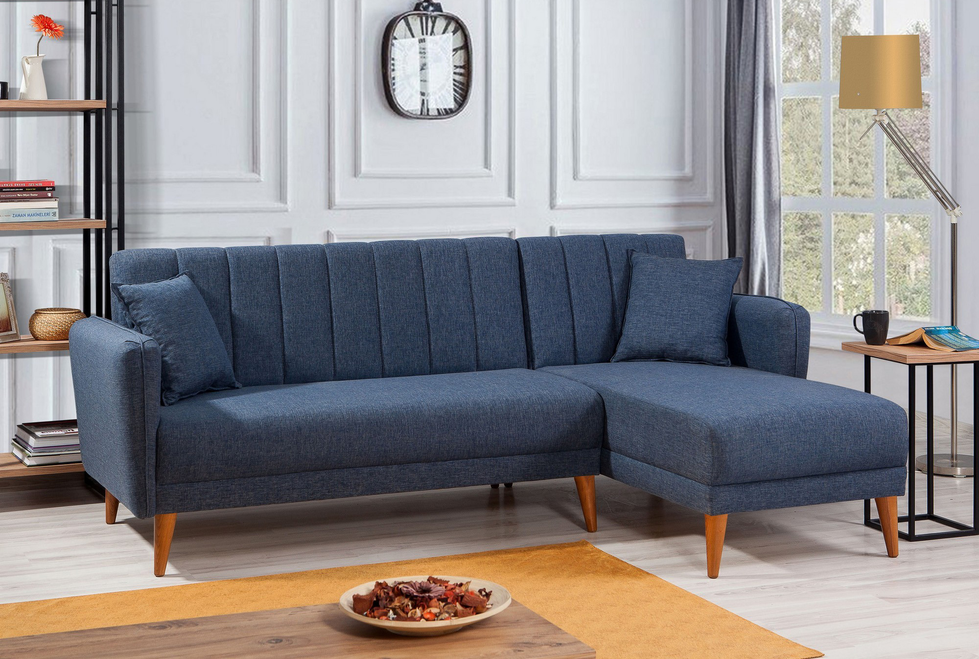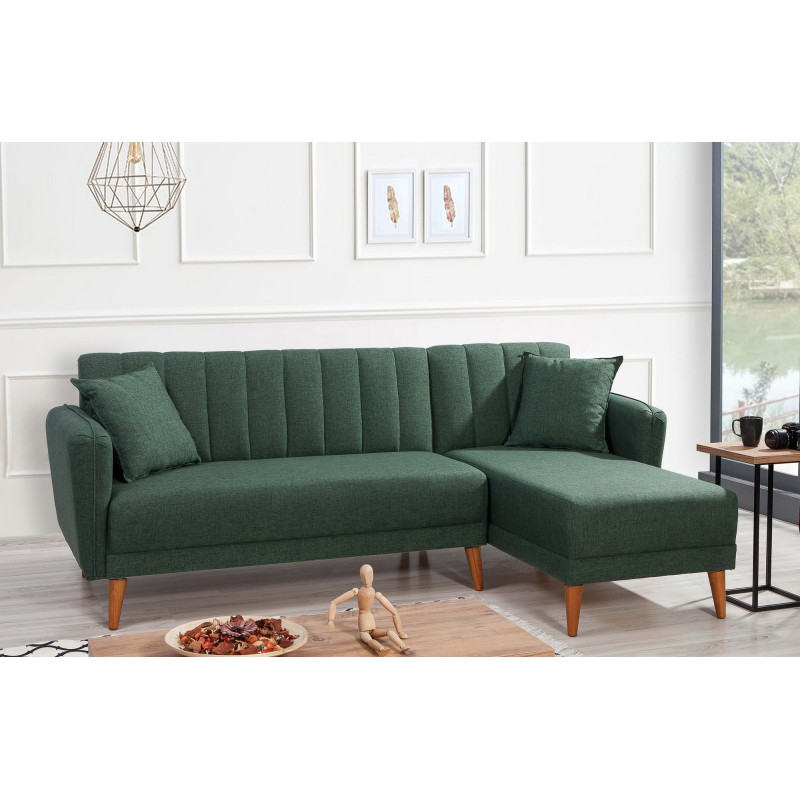 Les dimensions généreuses de ce canapé d'angle convertible permettent d'accueillir confortablement 3 personnes et plus avec ses 225 cm de longueur. L'assise profonde de 56 cm et sa hauteur de 43 cm offrent une position assise ergonomique pour des moments de détente prolongés. Le dossier culmine à 85 cm pour un maintien dorsal parfait, tandis que la profondeur variable (80 à 150 cm selon la configuration) s'adapte à vos besoins d'aménagement. Les pieds en bois de 17 cm apportent une élévation subtile qui facilite l'entretien tout en renforçant le caractère moderne de l'ensemble.