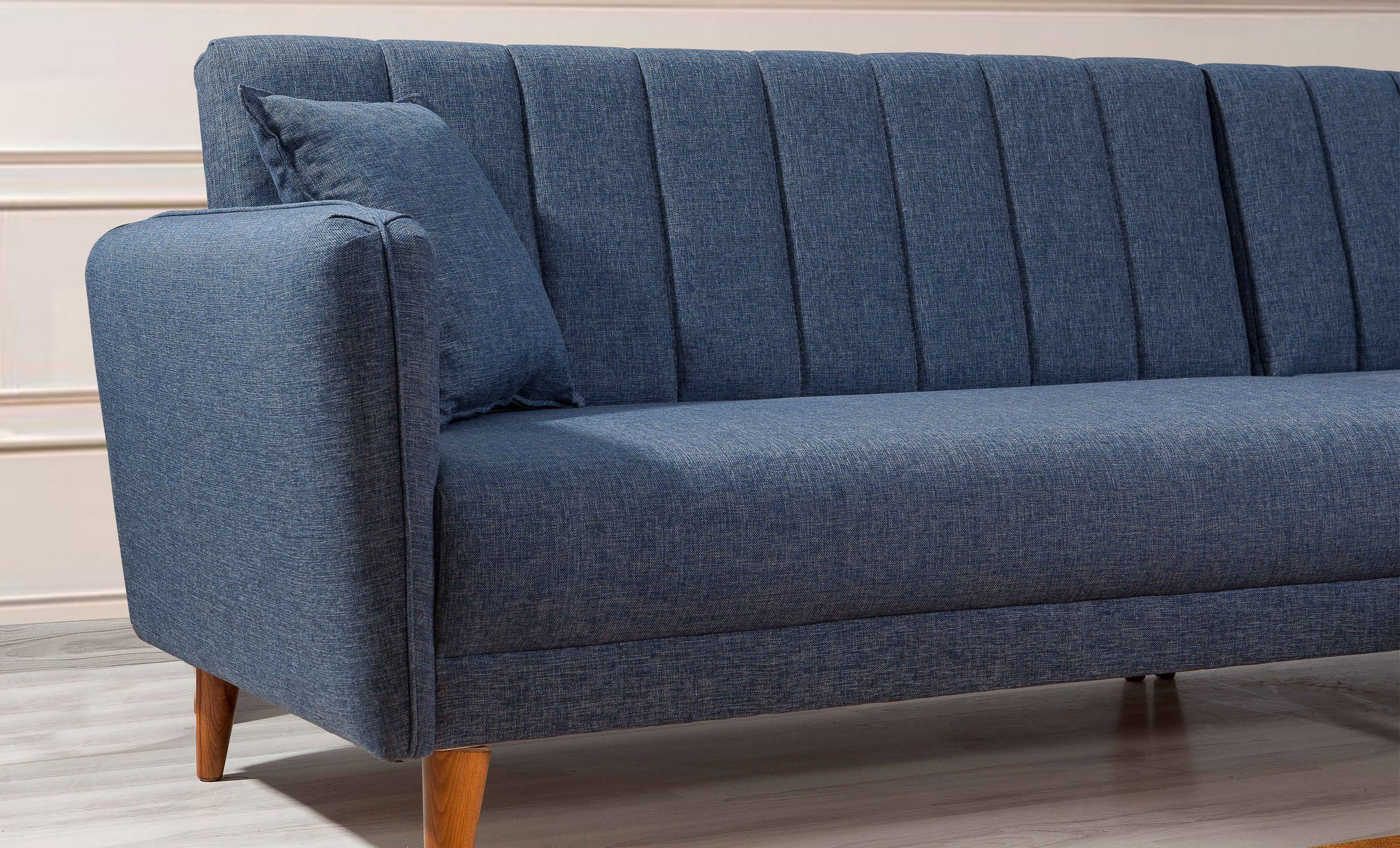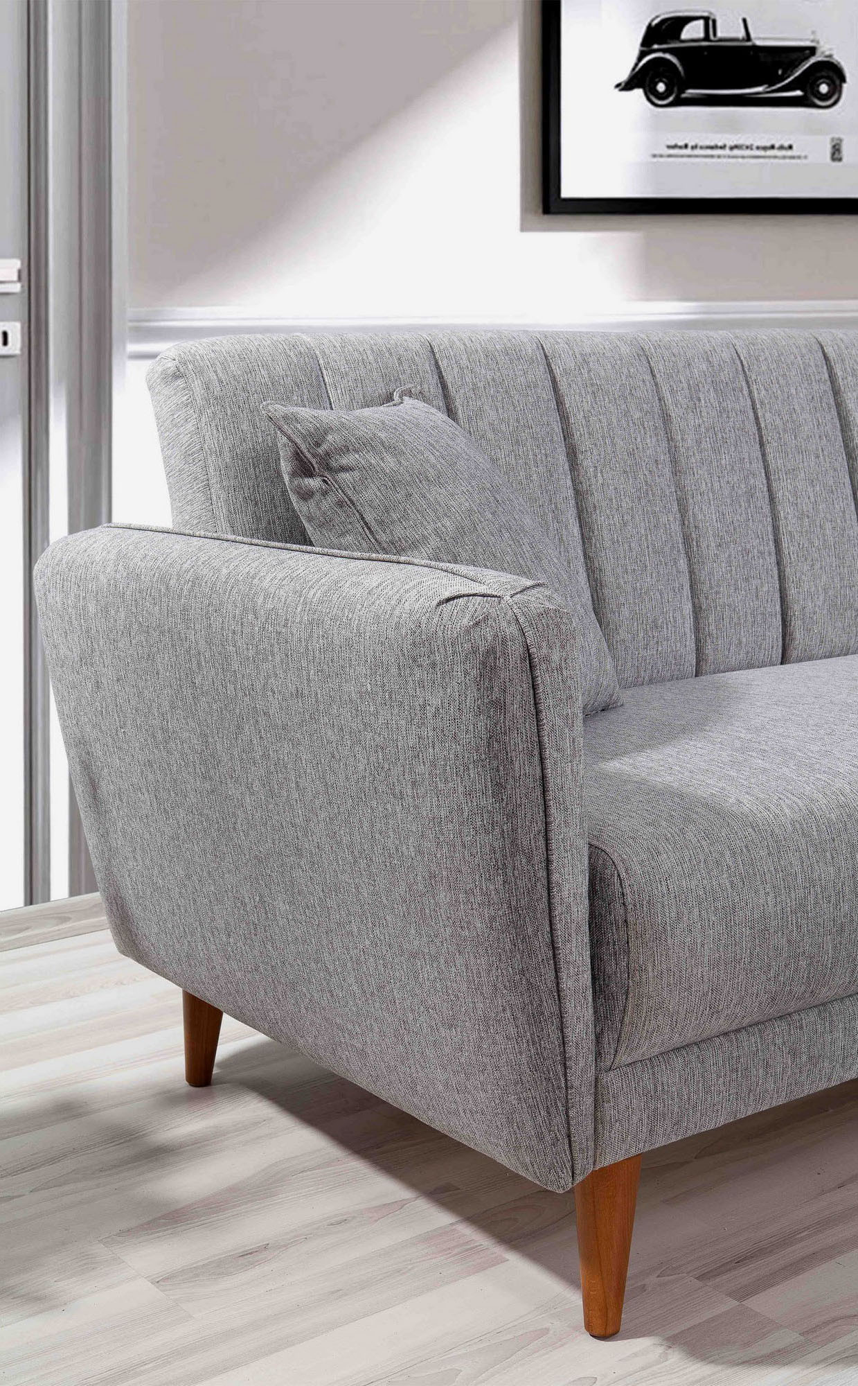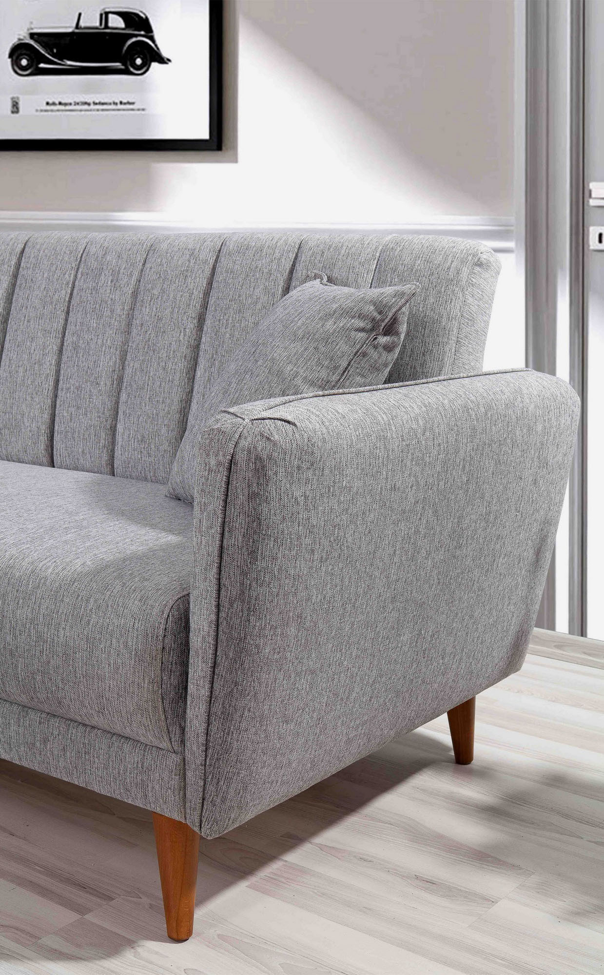 Conçu pour optimiser l'espace de vie, ce canapé convertible offre une solution astucieuse pour accueillir vos invités à tout moment. En quelques gestes simples, il se métamorphose en un couchage généreux de 205x105 cm, idéal pour transformer votre salon en chambre d'appoint confortable. La structure robuste en métal et bois assure une stabilité à toute épreuve, tandis que le garnissage en mousse polyuréthane haute densité (28 kg/m³) garantit un confort optimal, que ce soit pour une soirée télé ou une nuit complète. Ce canapé répond parfaitement aux besoins des petits espaces ou des familles qui recherchent polyvalence et praticité.
