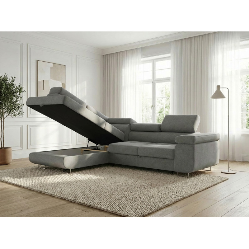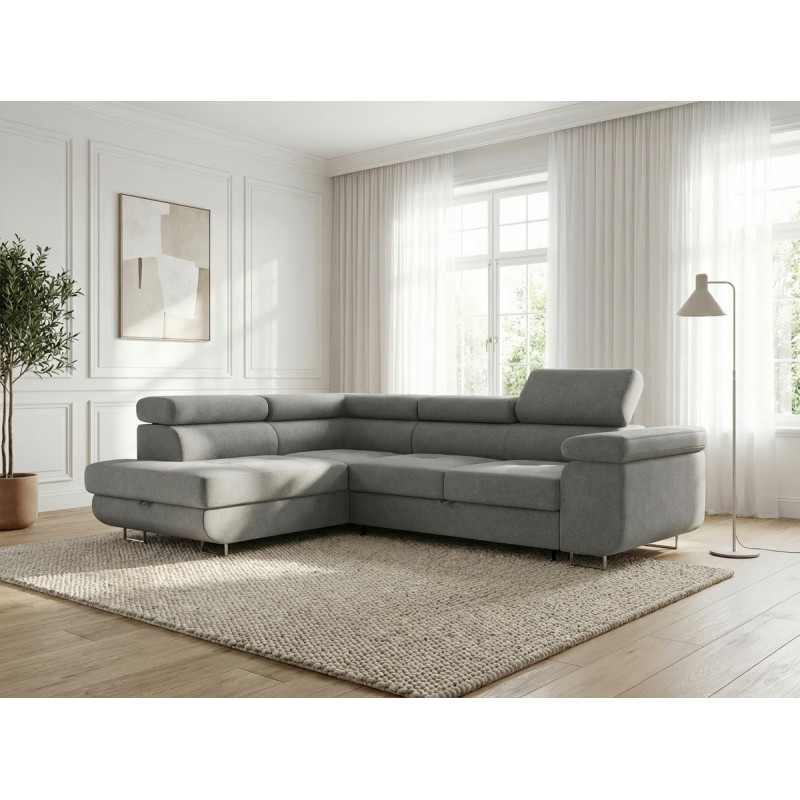 Le canapé d'angle Tongo de la marque Vivabita incarne l'élégance moderne au service du confort quotidien. Conçu et fabriqué en Europe, ce canapé d'angle se distingue par son revêtement en tissu raffiné disponible en gris clair ou gris foncé, apportant une touche de sophistication à votre salon. Avec ses dimensions généreuses de 280 cm de longueur et 203 cm de profondeur, il offre un espace accueillant pour 3 personnes et plus. Ses têtières réglables permettent d'ajuster votre position selon vos préférences, que ce soit pour la lecture, le visionnage de films ou simplement pour vous détendre après une longue journée.