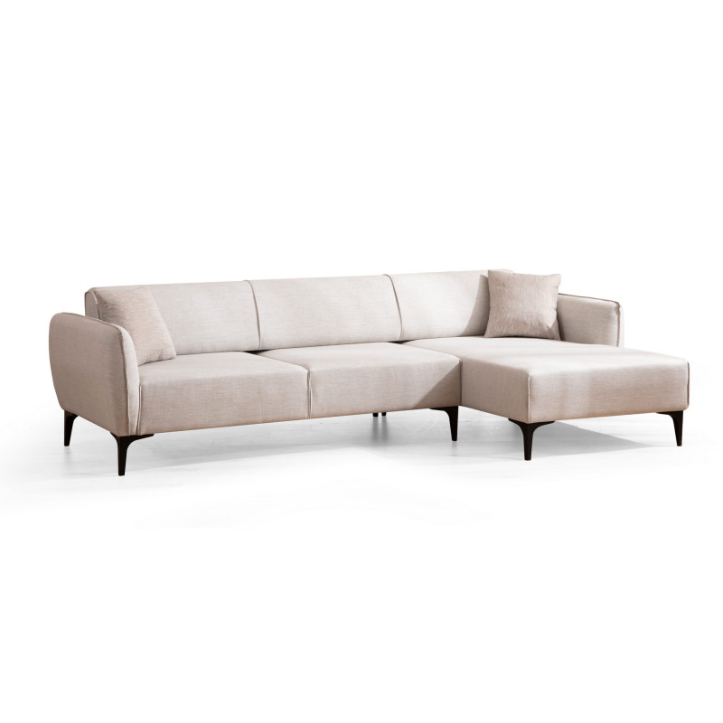 L'entretien de ce canapé d'angle reste simple et pratique grâce à son revêtement en tissu polyester qui se nettoie aisément avec un chiffon doux et humide. Cette facilité d'entretien en fait un choix judicieux pour les foyers actifs souhaitant préserver l'élégance de leur mobilier sans contraintes excessives. Le coloris blanc lumineux apporte une sensation d'espace et de fraîcheur à votre intérieur, s'adaptant parfaitement aux styles contemporains et scandinaves tout en servant de toile vierge pour vos accessoires décoratifs.