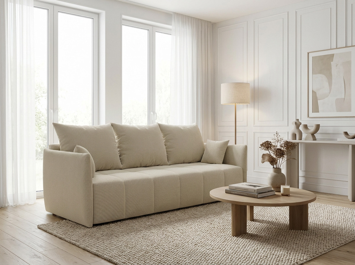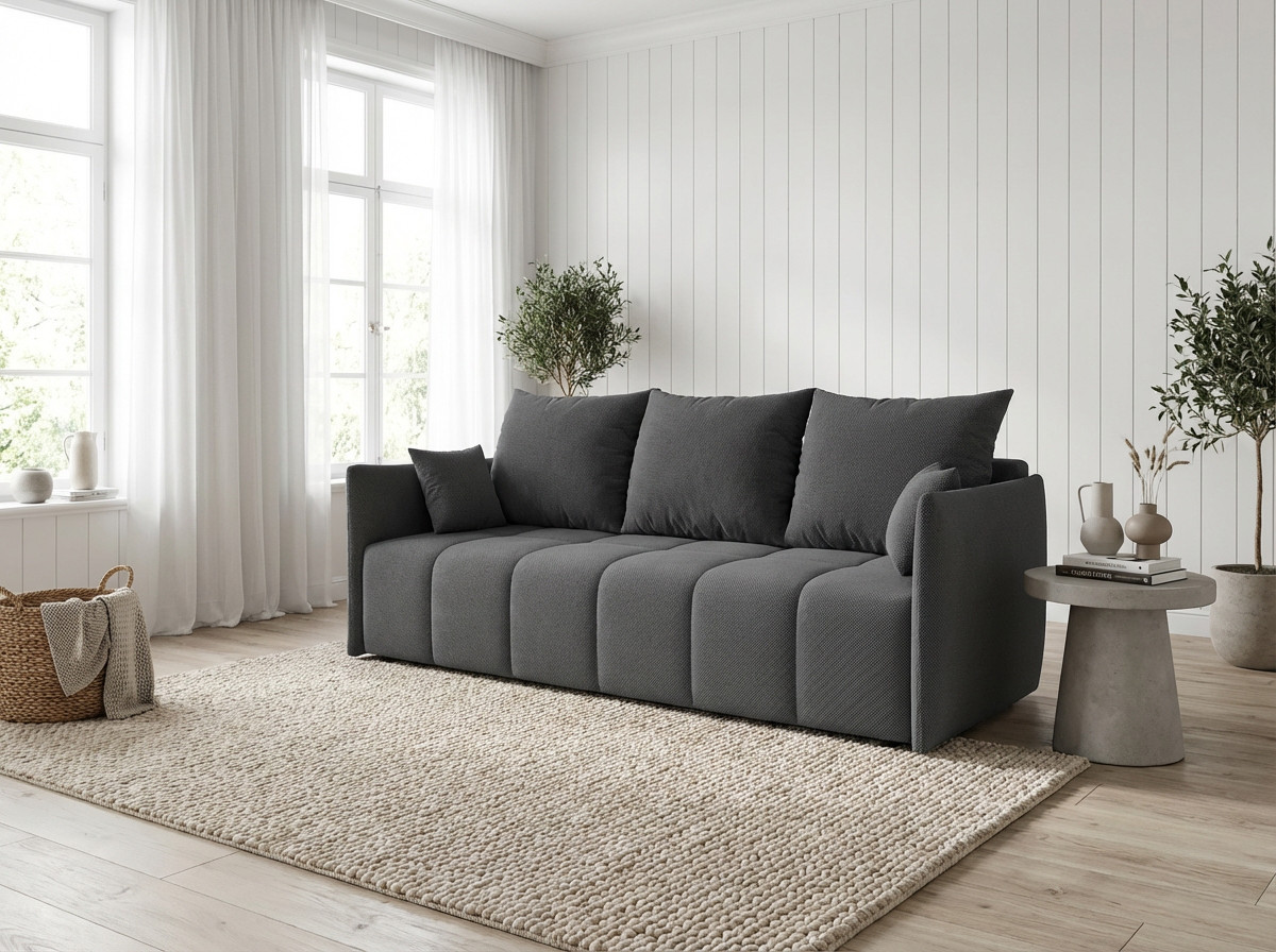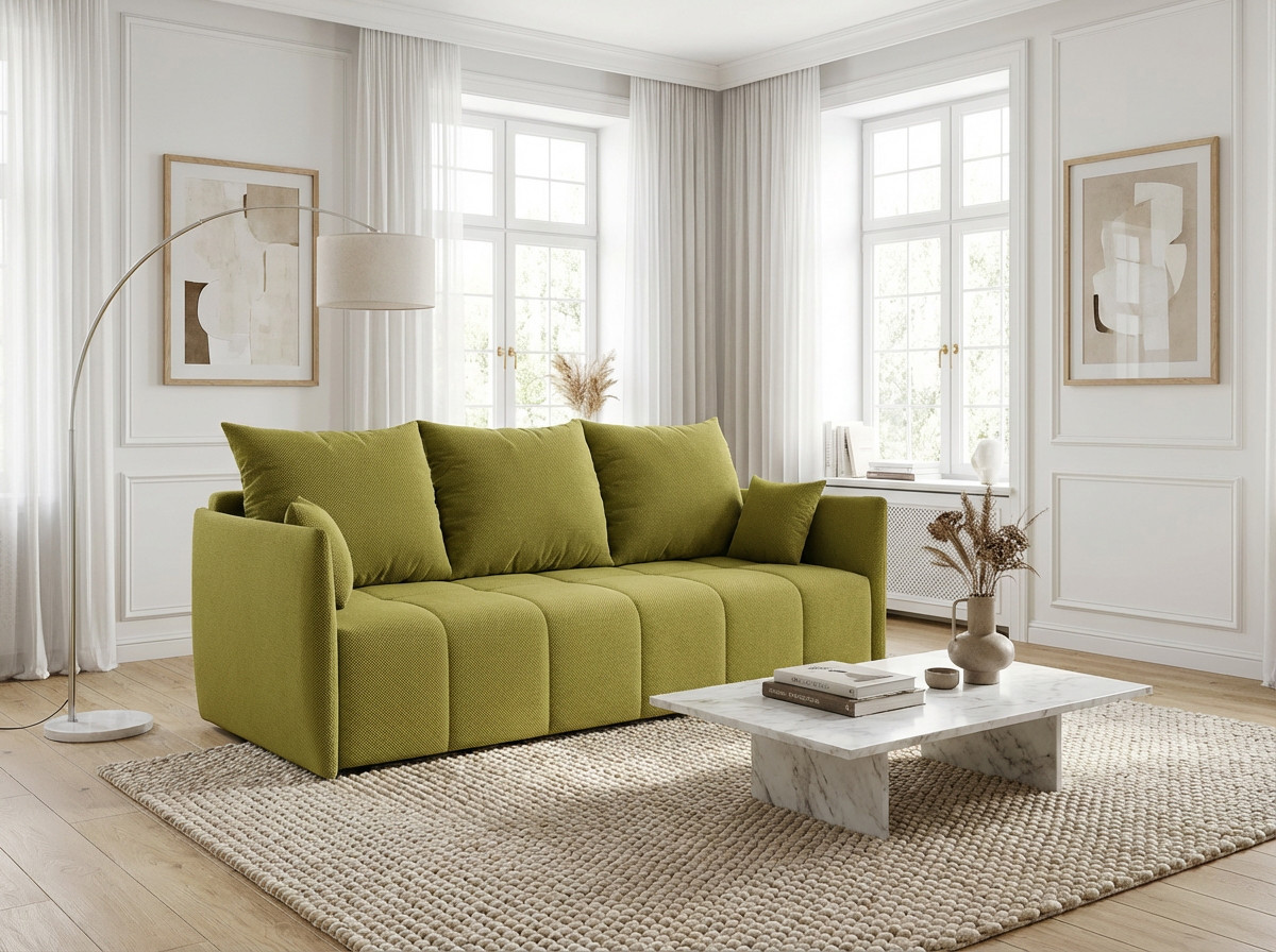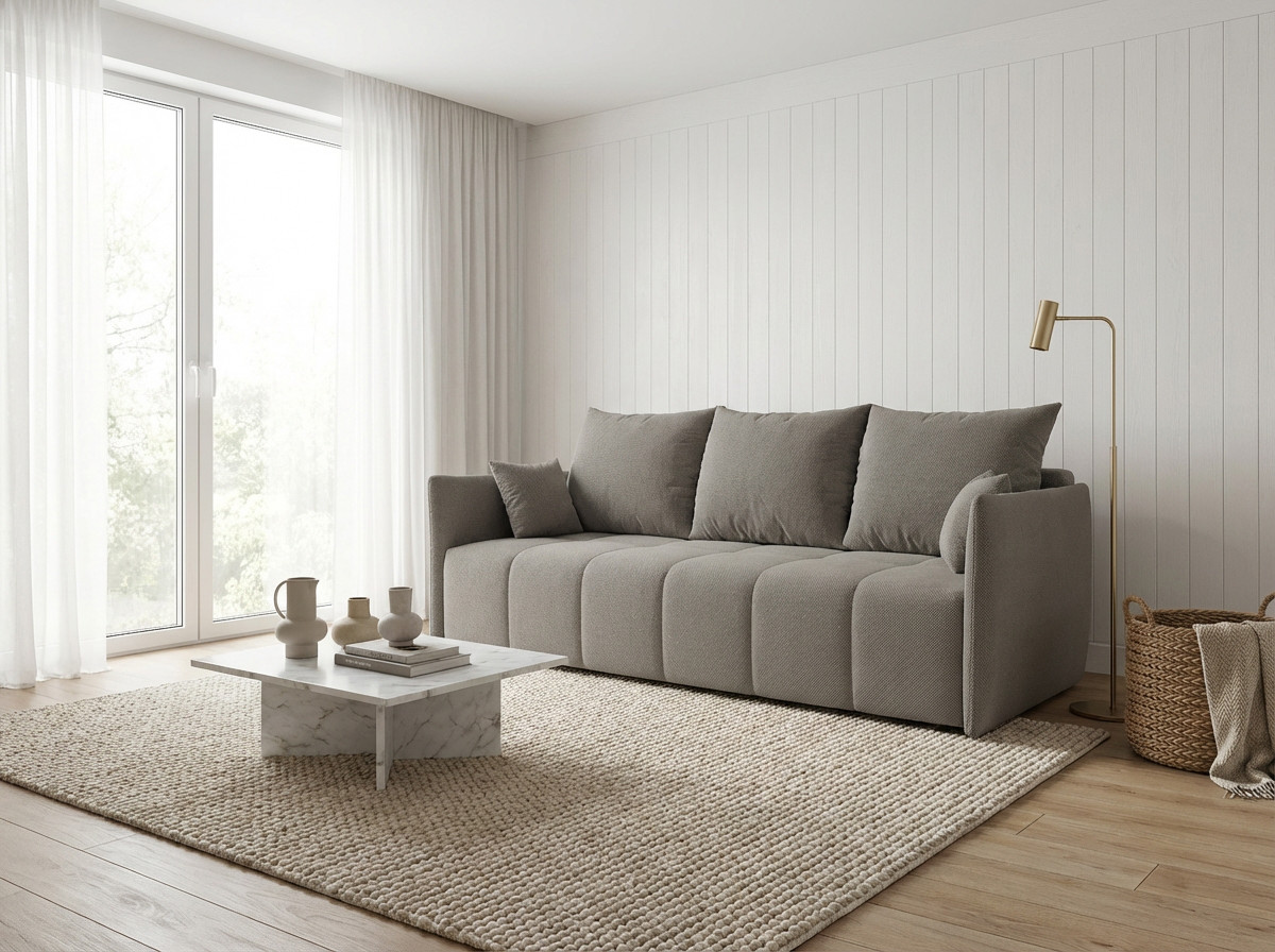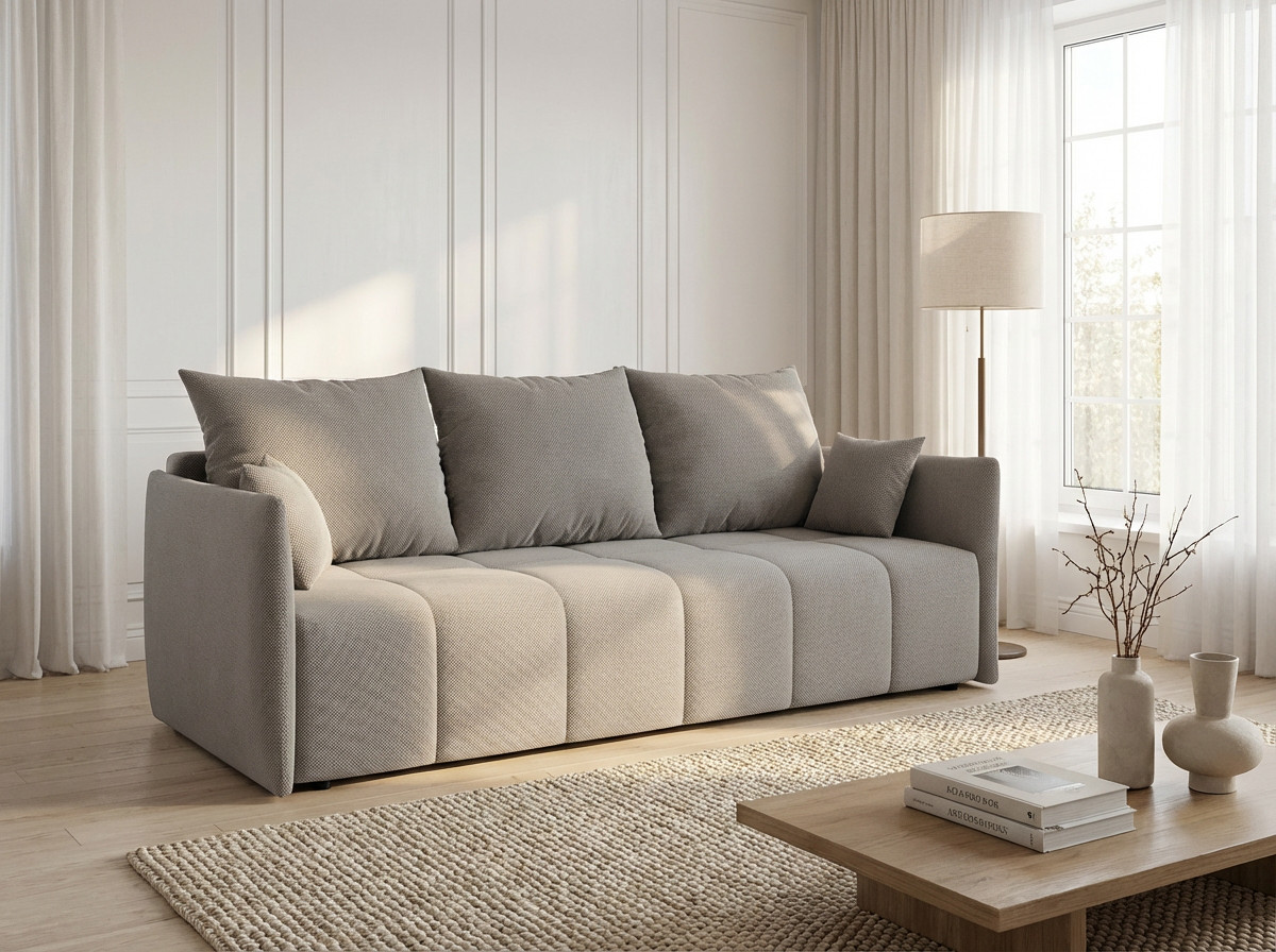La polyvalence constitue l'atout majeur de ce modèle qui transforme votre salon selon vos besoins quotidiens. Bien que conçu comme un canapé droit, le Louka intègre une fonction canapé convertible particulièrement ingénieuse pour accueillir vos invités lors des nuitées imprévues. Son mécanisme de conversion simple et rapide permet de passer d'un espace détente à un couchage d'appoint en quelques gestes seulement. L'assise profonde de 80 cm (50 cm avec les coussins moelleux garnis de flocons de mousse) assure un confort optimal tant en position assise qu'en configuration lit, répondant ainsi aux exigences des intérieurs modernes où chaque mètre carré compte.