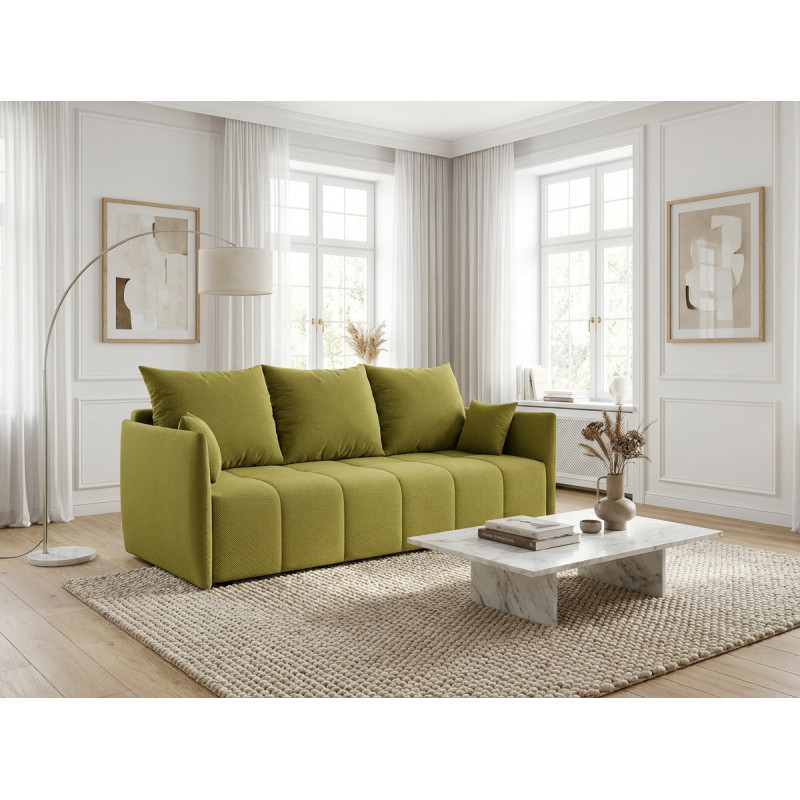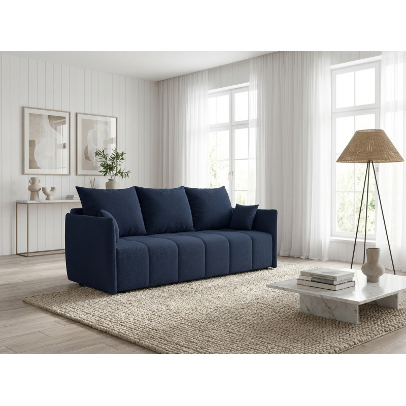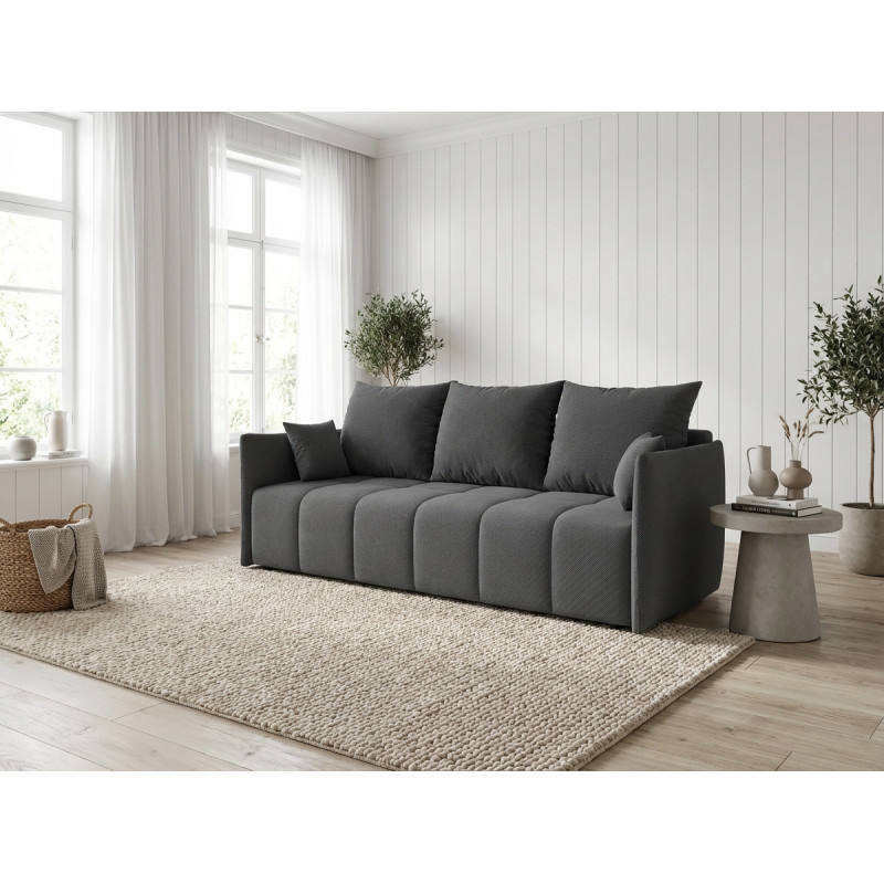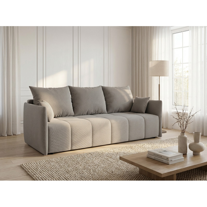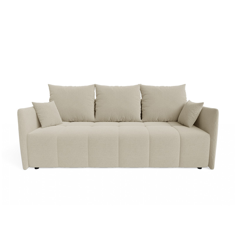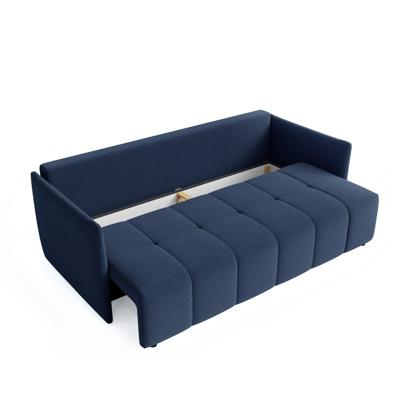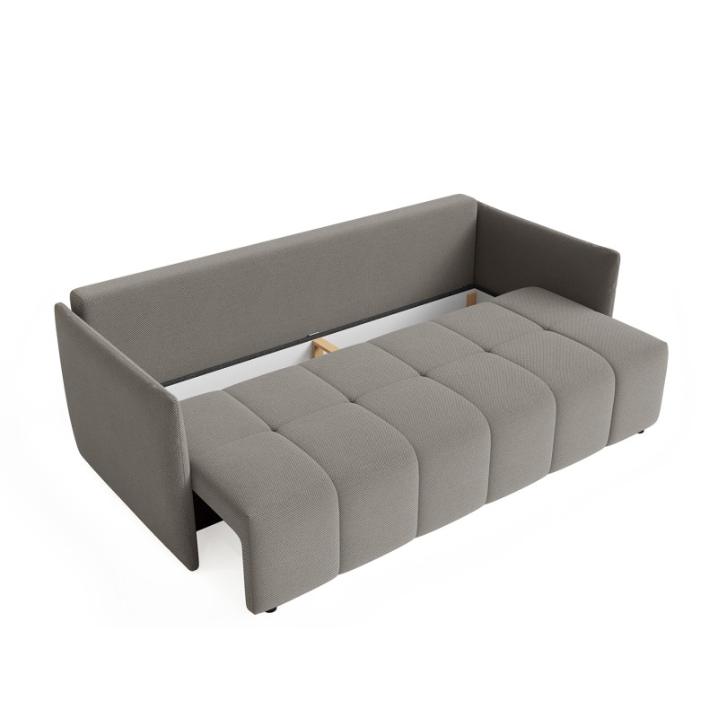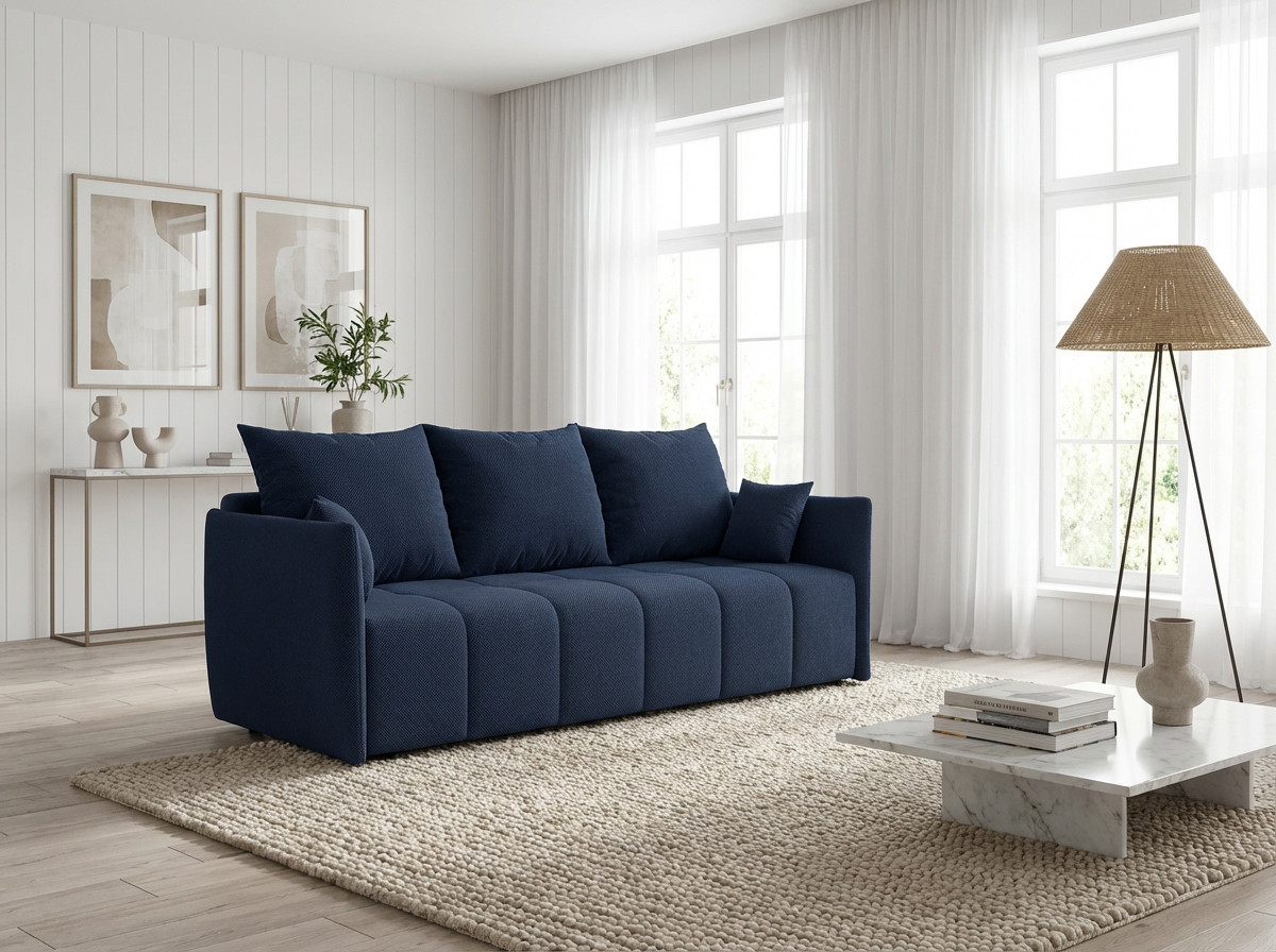 La polyvalence constitue l'atout majeur de ce modèle qui transforme votre salon selon vos besoins quotidiens. Bien que conçu comme un canapé droit, le Louka intègre une fonction canapé convertible particulièrement ingénieuse pour accueillir vos invités lors des nuitées imprévues. Son mécanisme de conversion simple et rapide permet de passer d'un espace détente à un couchage d'appoint en quelques gestes seulement. L'assise profonde de 80 cm (50 cm avec les coussins moelleux garnis de flocons de mousse) assure un confort optimal tant en position assise qu'en configuration lit, répondant ainsi aux exigences des intérieurs modernes où chaque mètre carré compte.