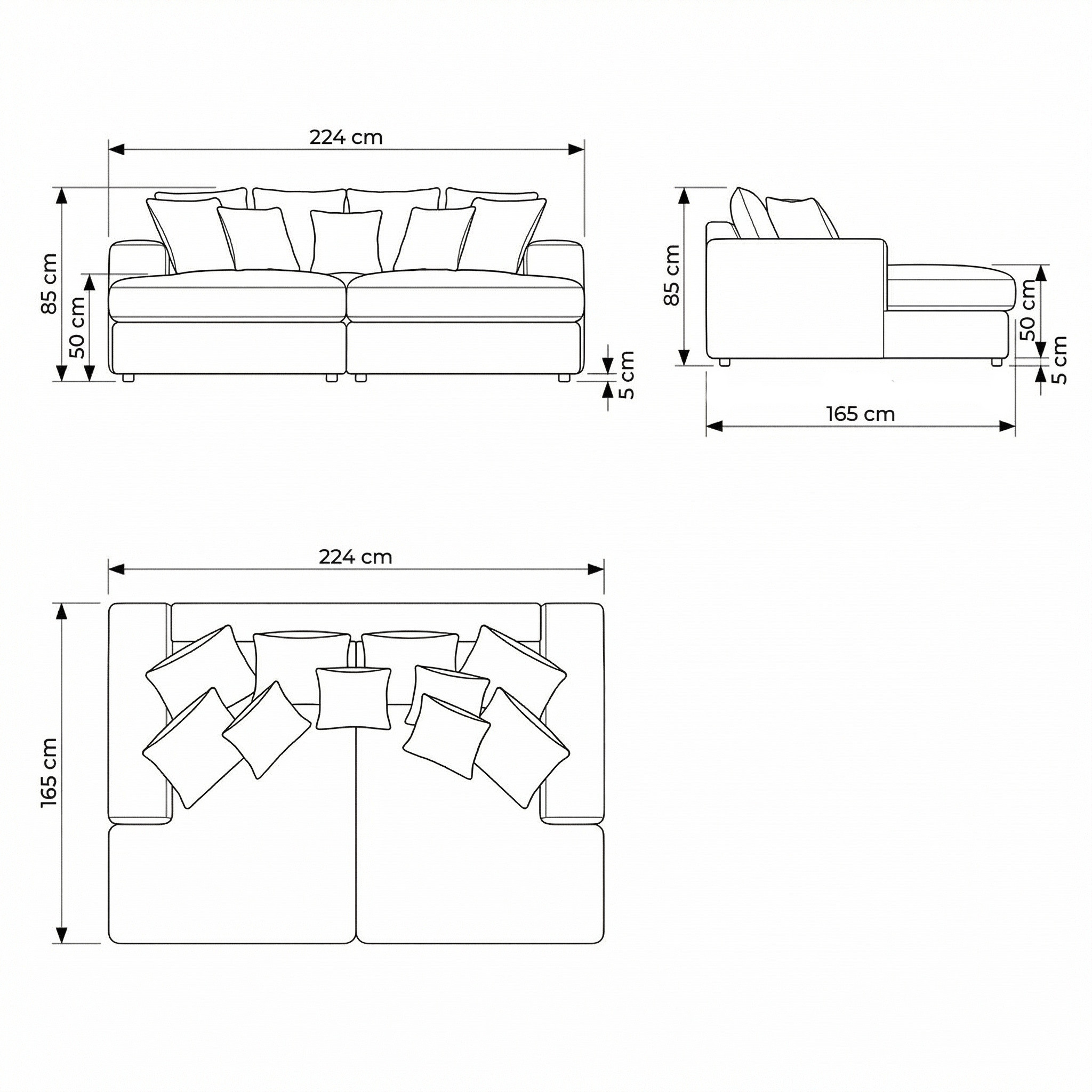 | Profondeur de l'assise | 160 cm (avec coussins) - 178 cm (sans coussin) |