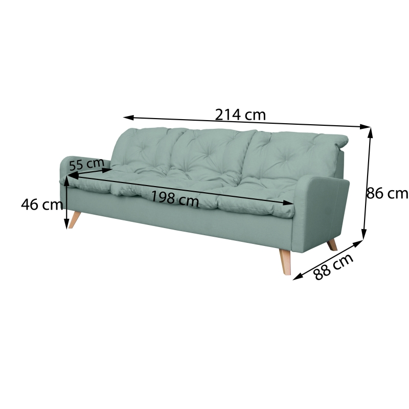 Apporter une touche moderne et colorée dans votre salon sera d'une simplicité avec le canapé en tissu fixe 3 places Carole. Sa structure est fabriquée en bois massif (pin et hêtre) et panneaux de particules de première qualité recouverte de tissu 100% polyester. L'assise dotée de ressorts zigzag se compose de coussins capitonnés garnis de flocons de mousse équipés d'attaches crocodile pour un déhoussage facile. Le dossier doté de sangles élastiques se compose de coussins capitonnés garnis de flocons de mousse. Le canapé Carole vous sera livré avec 4 pieds en hêtre de 16 cm de hauteur. Pour un ensemble harmonieux, vous pouvez opter pour les autres canapés de la gamme Carole vendus séparément.