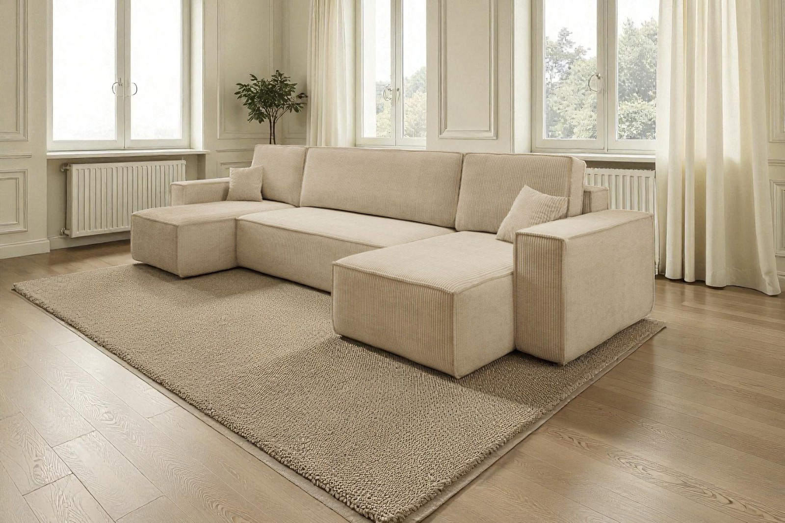 Laissez-vous séduire par le canapé panoramique convertible Anabella, un modèle en velours côtelé beige conçu pour allier élégance et praticité. Imaginé par Deladeco, ce canapé spacieux de 312 cm offre un espace généreux pour se détendre seul, en famille ou entre amis. Grâce à son assise en mousse polyuréthane, ce canapé garantit un confort optimal et une sensation de bien-être dès l'instant où vous vous y installez.