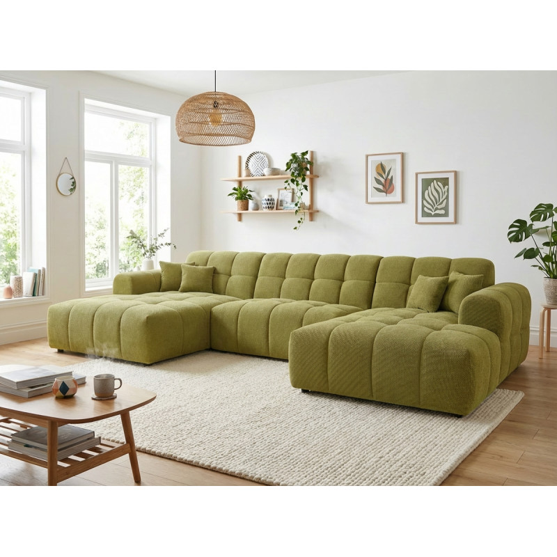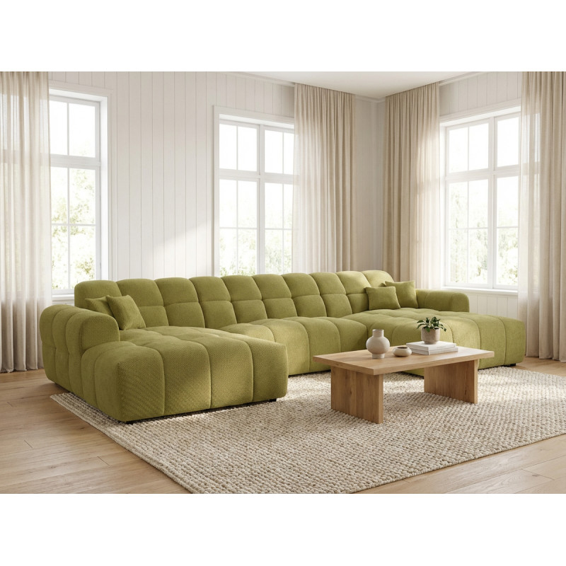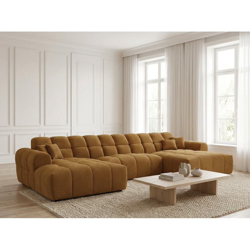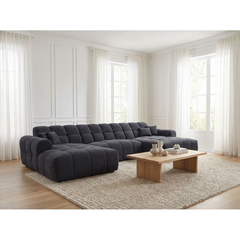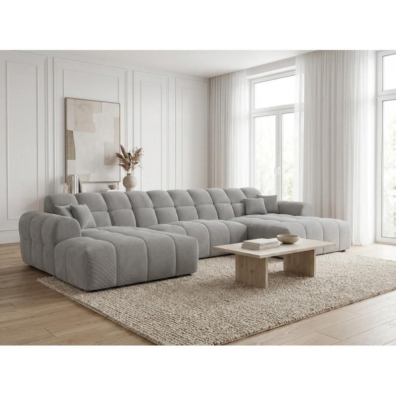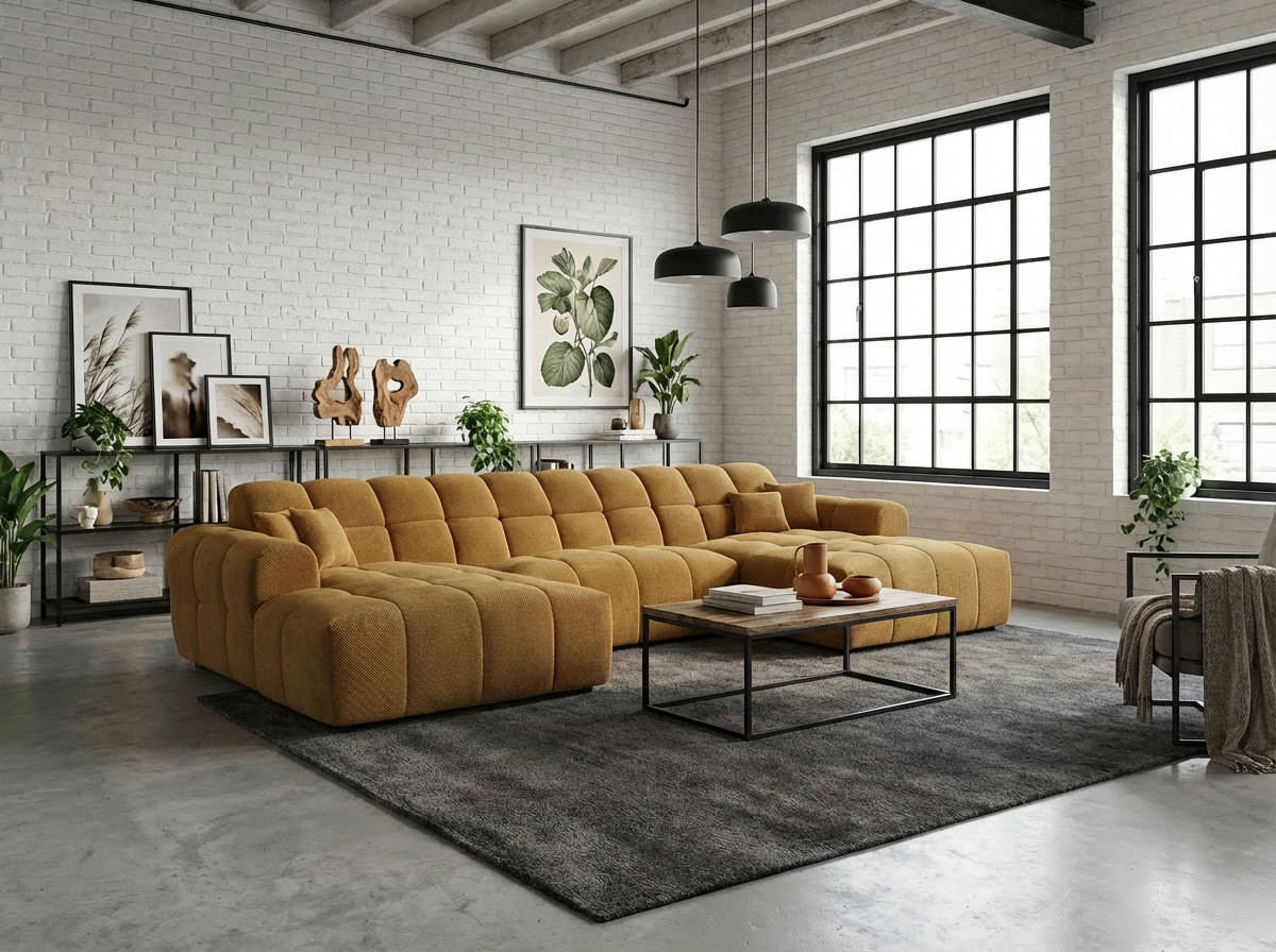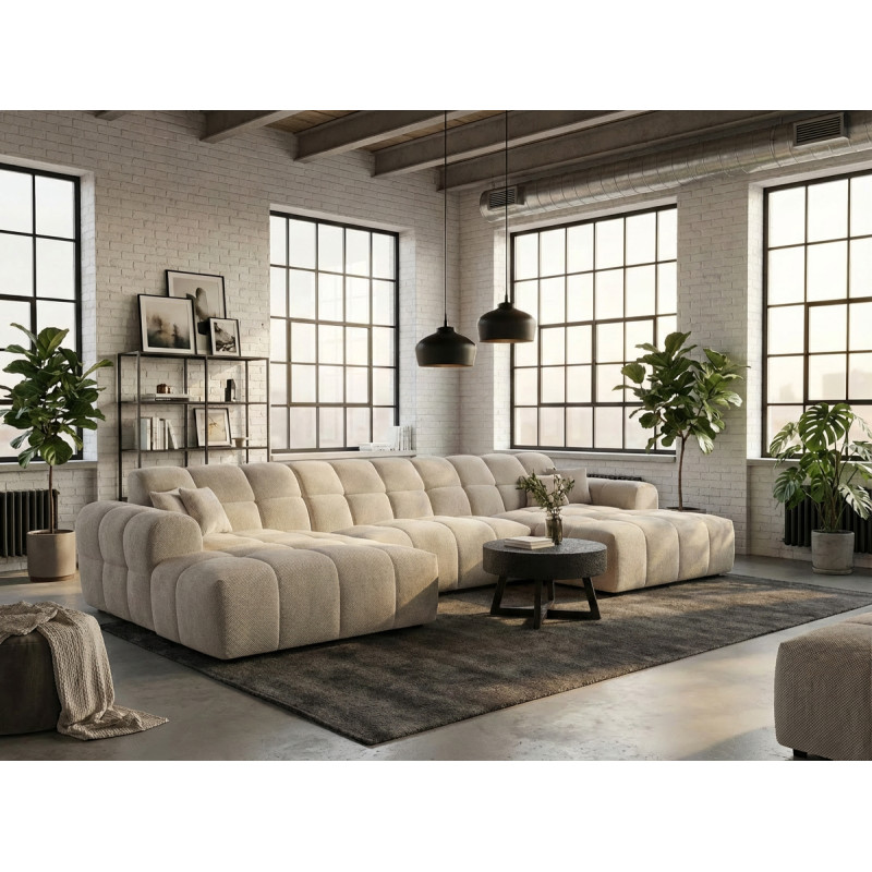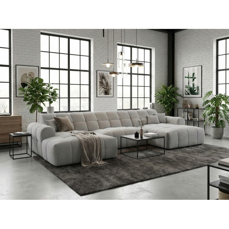 Le canapé panoramique moderne en tissu Roxie de la marque Vivabita incarne l'alliance parfaite entre design contemporain et confort optimal. Avec ses dimensions généreuses de 320 cm de longueur et 162 cm de profondeur, ce canapé panoramique transforme votre espace de vie en un véritable havre de détente. Fabriqué en Europe, il témoigne d'un savoir-faire reconnu et d'une qualité de fabrication irréprochable. Son style résolument moderne s'adapte à tous les intérieurs contemporains, tandis que sa palette de coloris variée - beige, gris, olive, moutarde, bleu foncé ou anthracite - permet de personnaliser votre salon selon vos envies décoratives.