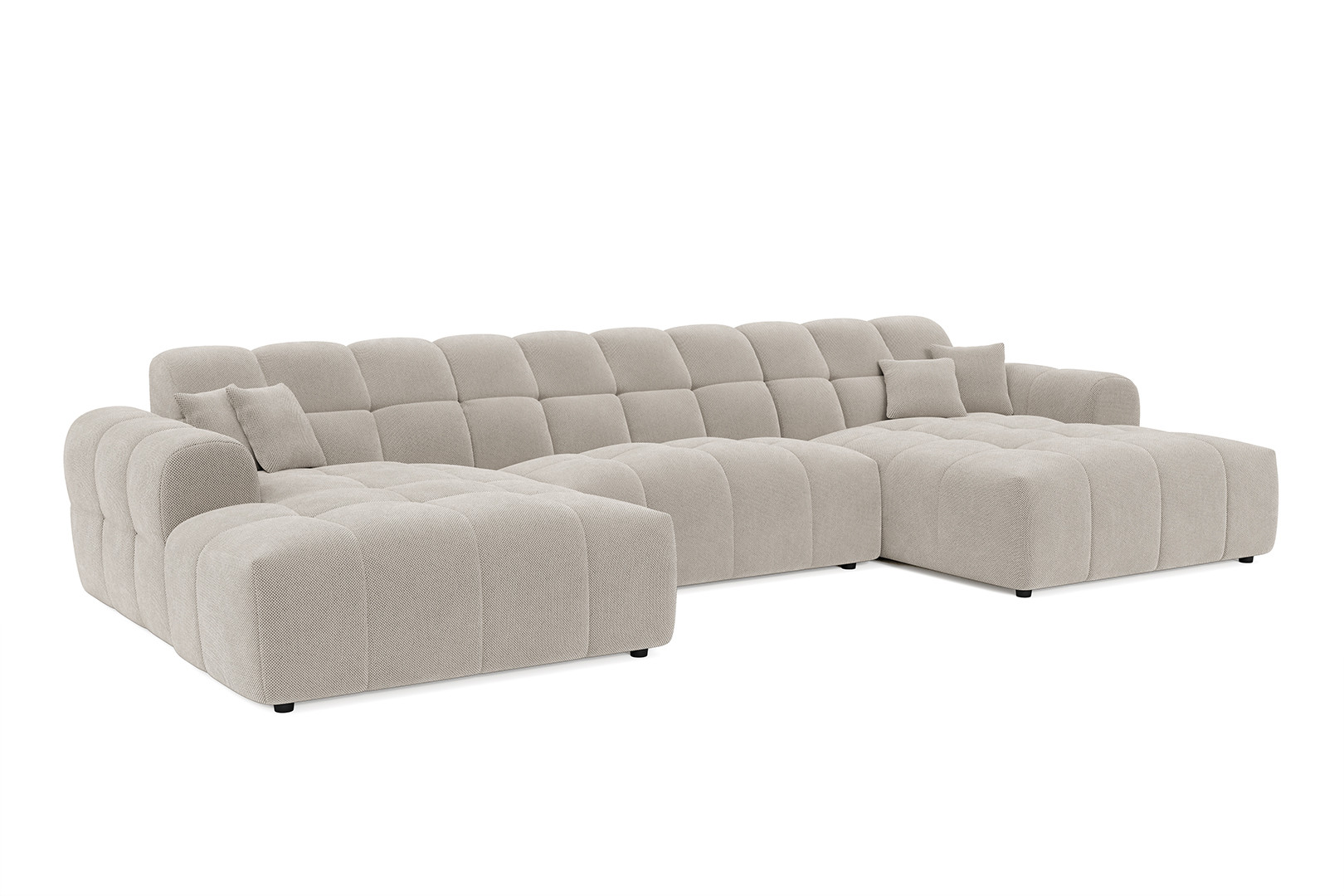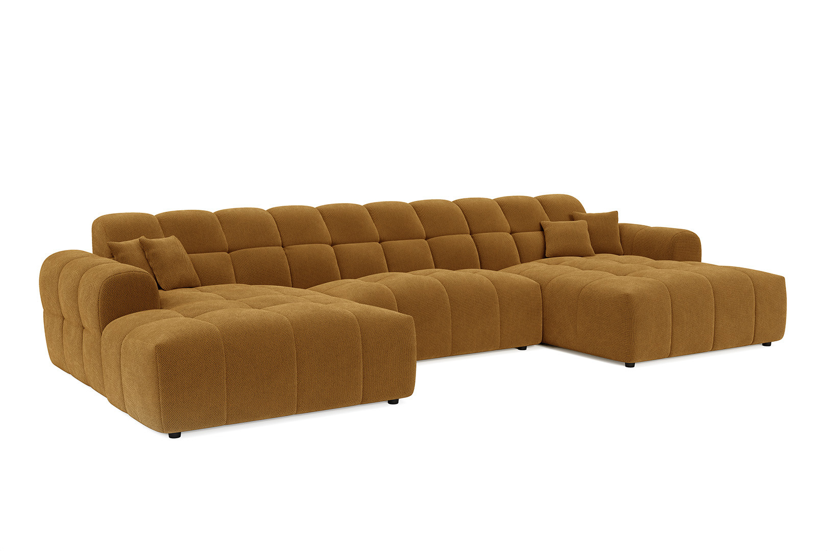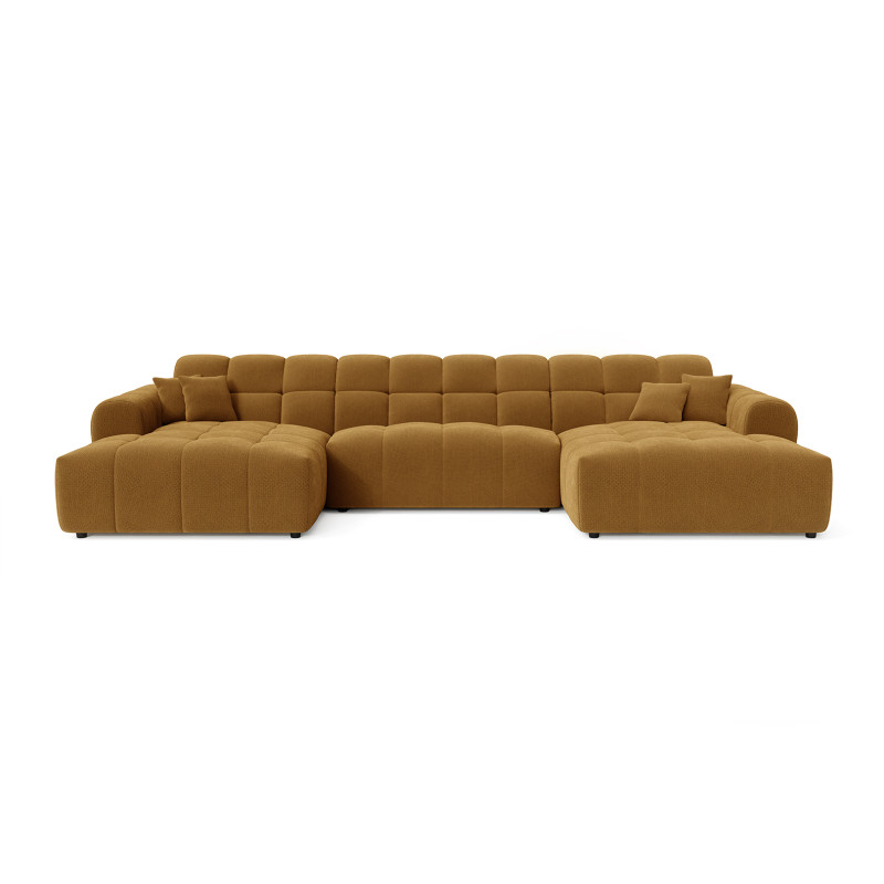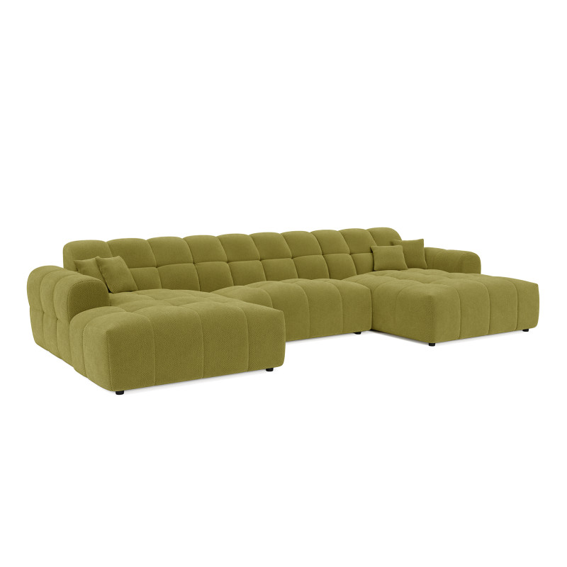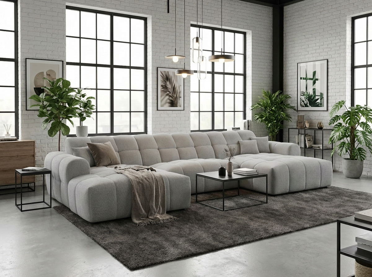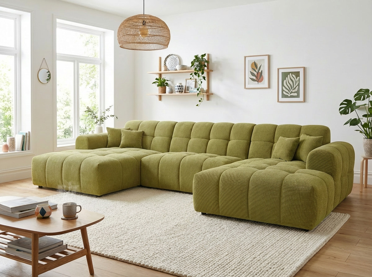 Le canapé panoramique moderne en tissu Roxie de la marque Vivabita incarne l'alliance parfaite entre design contemporain et confort optimal. Avec ses dimensions généreuses de 320 cm de longueur et 162 cm de profondeur, ce canapé panoramique transforme votre espace de vie en un véritable havre de détente. Fabriqué en Europe, il témoigne d'un savoir-faire reconnu et d'une qualité de fabrication irréprochable. Son style résolument moderne s'adapte à tous les intérieurs contemporains, tandis que sa palette de coloris variée - beige, gris, olive, moutarde, bleu foncé ou anthracite - permet de personnaliser votre salon selon vos envies décoratives.