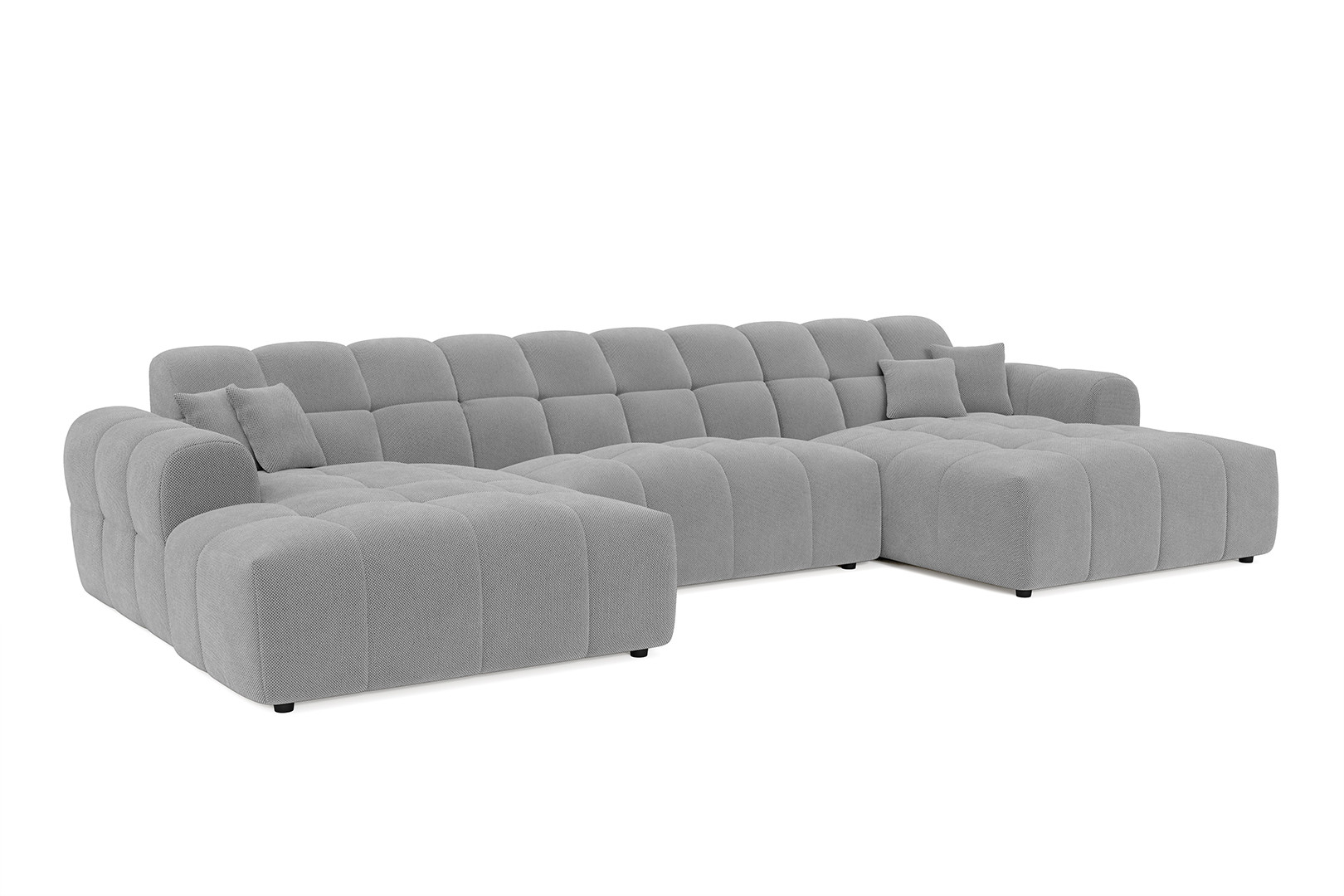 Les finitions soignées du Roxie se distinguent par ses accoudoirs généreux de 27 cm de large, 62 cm de haut et 95 cm de profondeur, offrant un espace de repos supplémentaire pour les bras. Le piétement en PVC de 5 cm de hauteur assure une stabilité parfaite tout en facilitant l'entretien du sol sous le meuble. Bien que ce modèle ne soit pas un canapé convertible, sa configuration panoramique maximise l'espace d'assise disponible. Son revêtement en tissu apporte une touche de douceur et de chaleur à votre intérieur, tout en restant facile d'entretien grâce à un simple passage de chiffon doux et humide.
