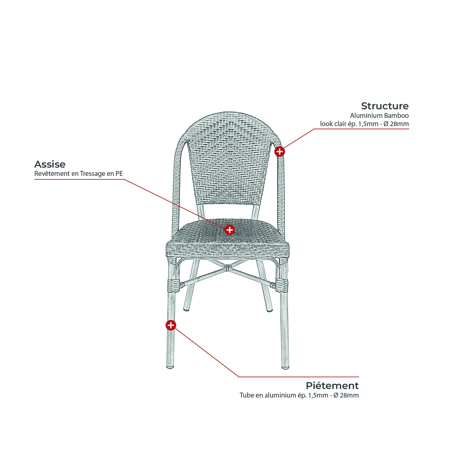 | Structure des chaises | Aluminium |