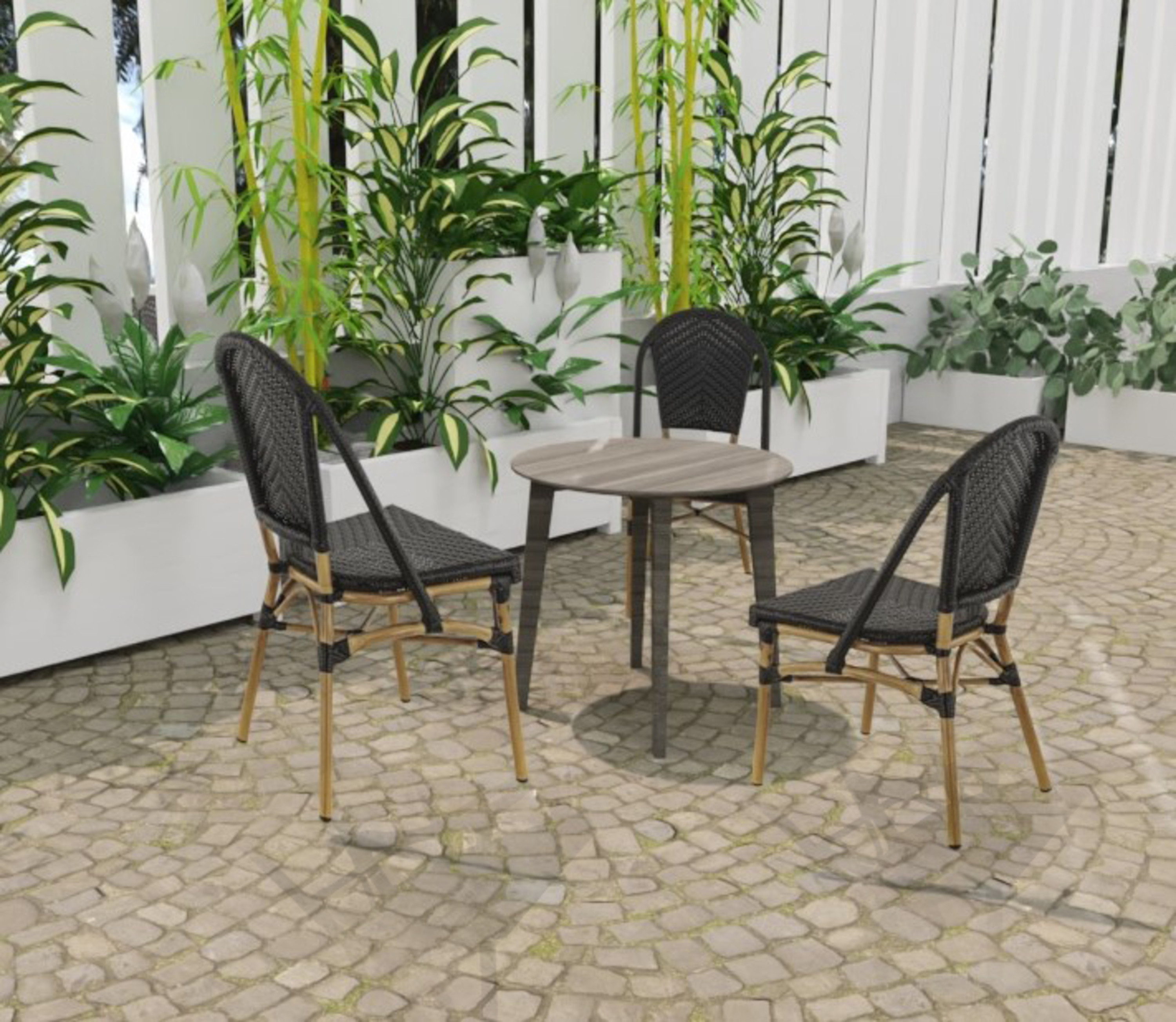 Optez pour la chaise de restaurant d’extérieur Soron, un modèle qui allie style et praticité, conçu spécialement pour les professionnels. Imaginée par la marque Restoflex en Belgique, cette chaise de restaurant d'extérieur se distingue par son tressage PE noir raffiné et sa structure en aluminium ultra-résistante. Son piètement effet bambou en finition époxy apporte une touche naturelle et chaleureuse. Et parce qu’un espace bien organisé est essentiel, ce modèle s’empile jusqu’à cinq unités, offrant ainsi un gain de place non négligeable.