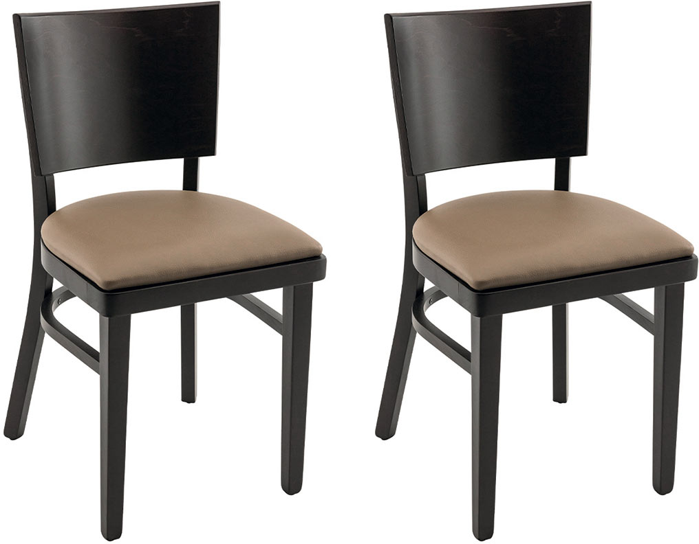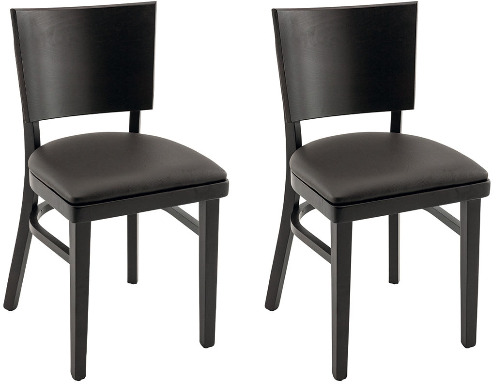 La chaise de restaurant Myrthille trouve naturellement place dans votre établissement. Vendue par 2, cette chaise contemporaine en bois de hêtre de teinte wengé vous est proposée en coloris noir, chocolat et taupe. Elle dispose d'une assise revêtue d'un élégant similicuir ininflammable et conforme à la norme européenne non-feu EN 1021 : 1/2 afin d'assurer une sécurité optimale à vos locaux. D'un poids de 5.2 kg, cette chaise de restaurant en bois mesure :