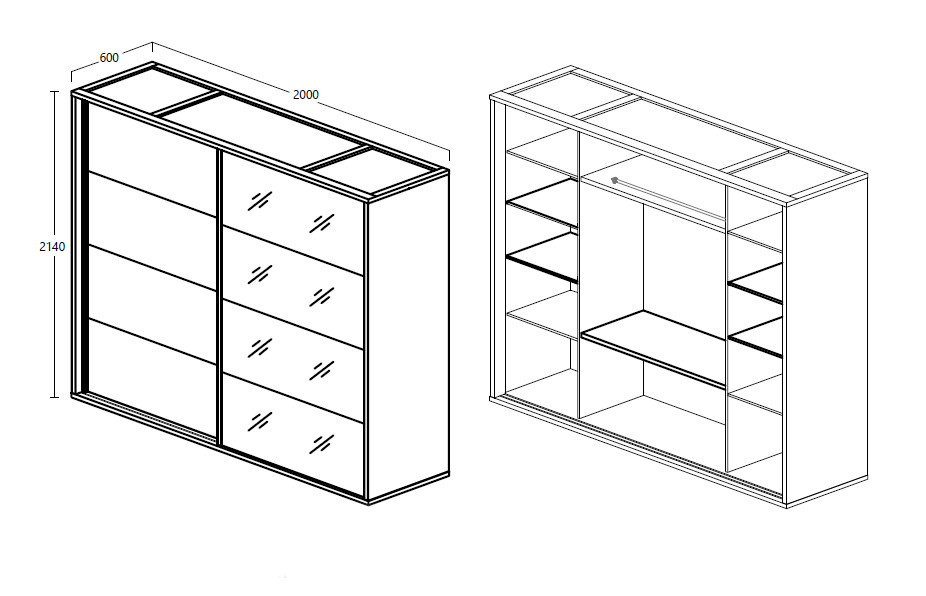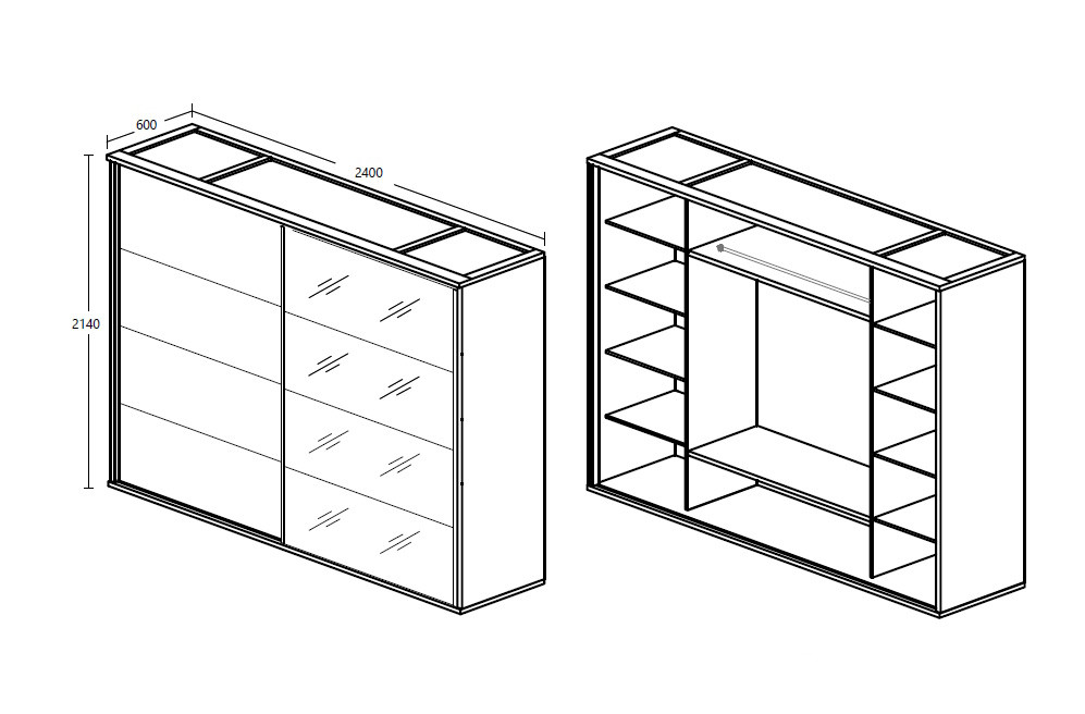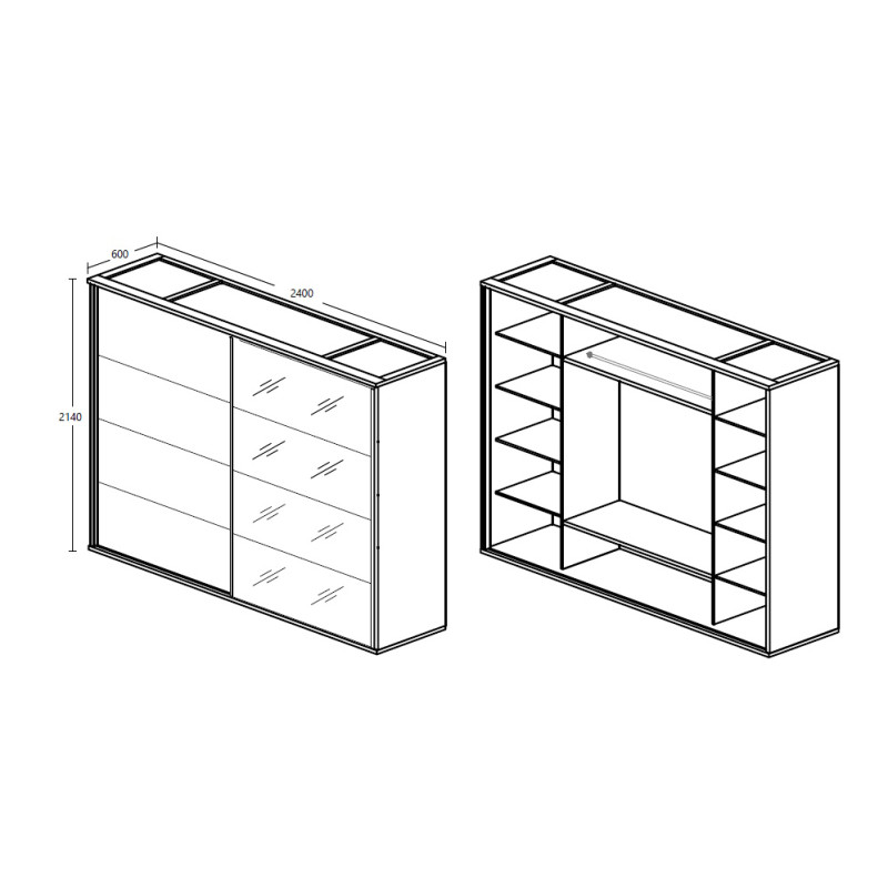 Armoire : L 200 x H 214 x P 60 cm ou L 240 x H 214 x P 60 cm