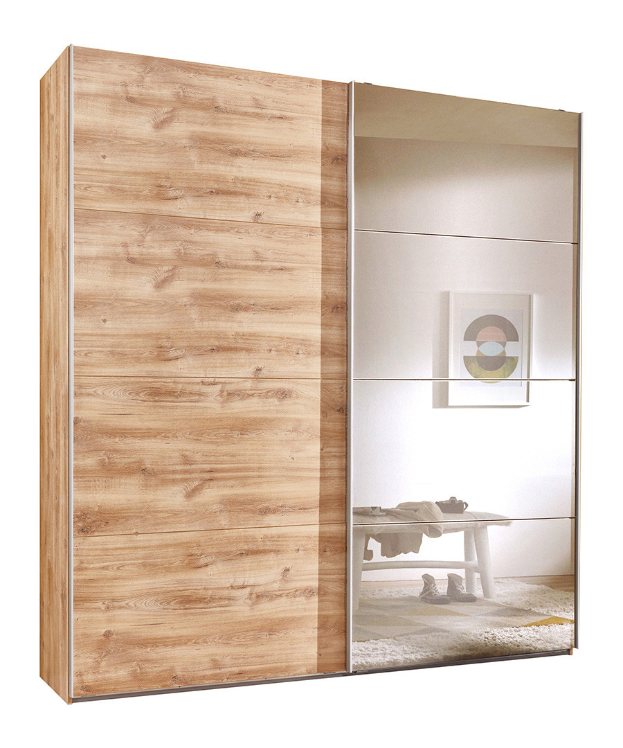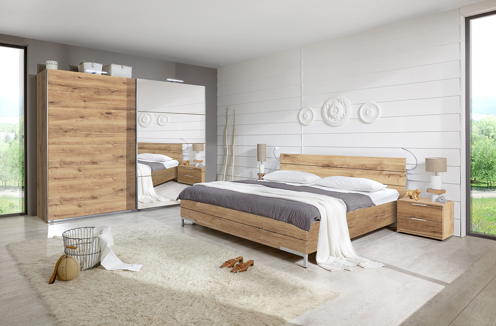 La chambre adulte complète contemporaine Beverly est fabriquée en panneaux de particules de première qualité recouverts d'un décor papier. Elle se compose de quatre éléments : une armoire portes coulissantes, un lit disponible dans trois dimensions de couchage et deux chevets.