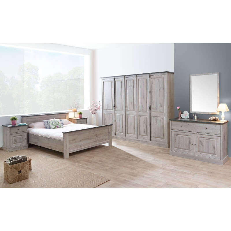 Apportez un souffle de nouveauté et de chaleur dans votre intérieur avec la chambre adulte complète contemporaine Milos. Sa structure est fabriquée en panneaux alvéolaires 100 % mélaminés avec chants ABS 2 mm. Le panneau alvéolaire a la particularité d'être extrêmement robuste et léger à la fois. Elle se compose de quatre éléments : une armoire 5 portes, un lit disponible en trois dimensions de couchage et deux chevets. Pour un ensemble harmonieux, optez pour les autres meubles de la gamme Milos vendus séparément.