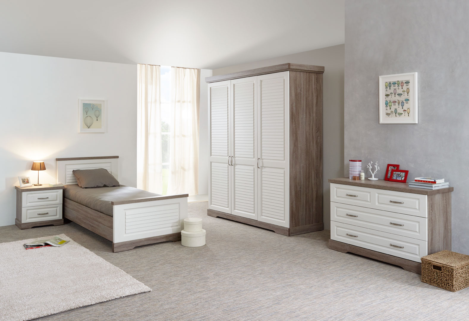 Apportez une touche moderne et originale dans votre intérieur grâce à la chambre adulte complète contemporaine Celesta II. Sa structure est fabriquée en panneaux de particules de première qualité. Elle se compose de 4 éléments : une armoire 3 portes, un lit offrant un couchage 90 x 200, un chevet et une commode trois tiroirs. Les tiroirs des meubles sont montés sur coulisses métalliques. Pour un ensemble harmonieux, optez également pour les autres éléments de la gamme Celesta vendus séparément.