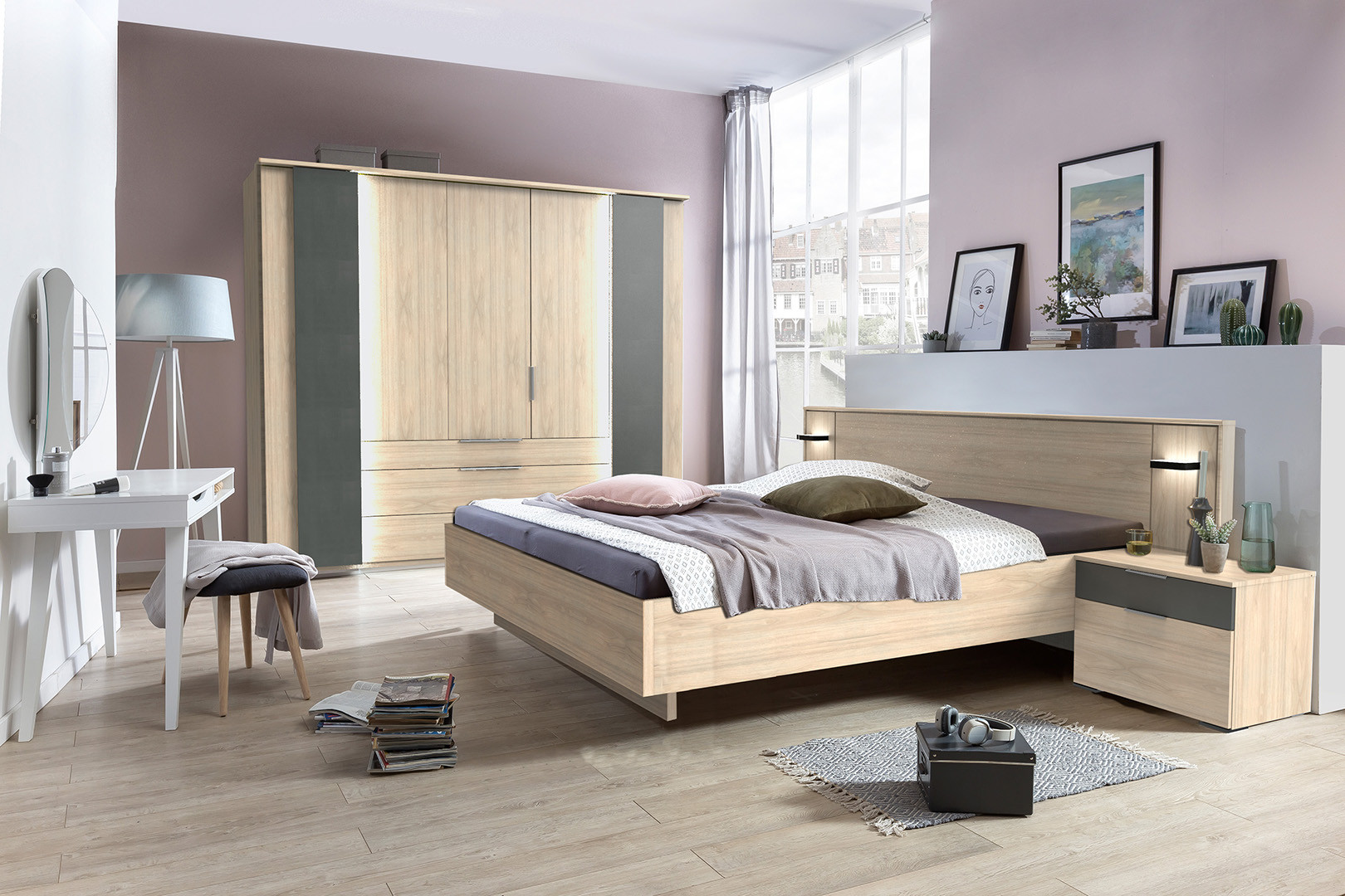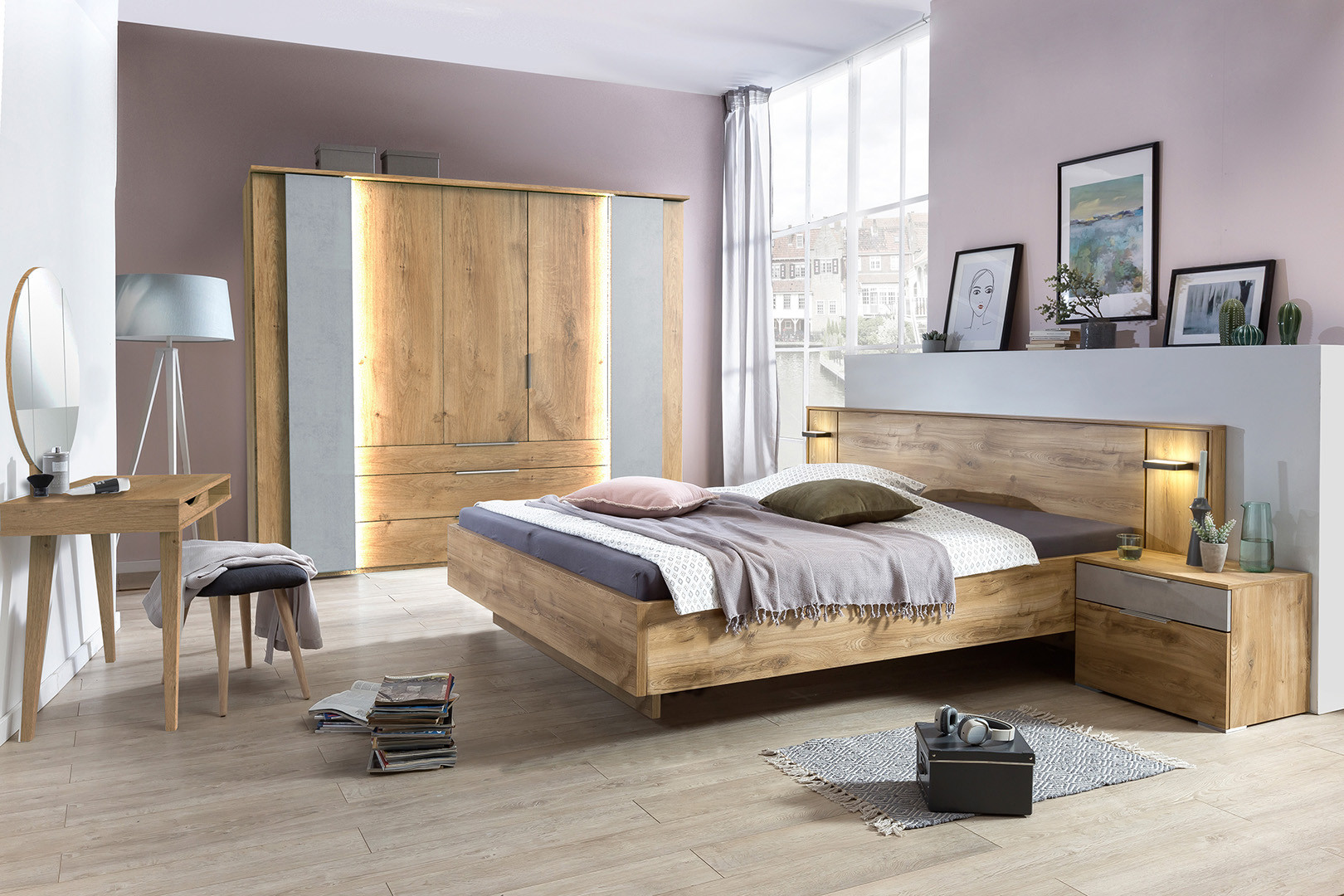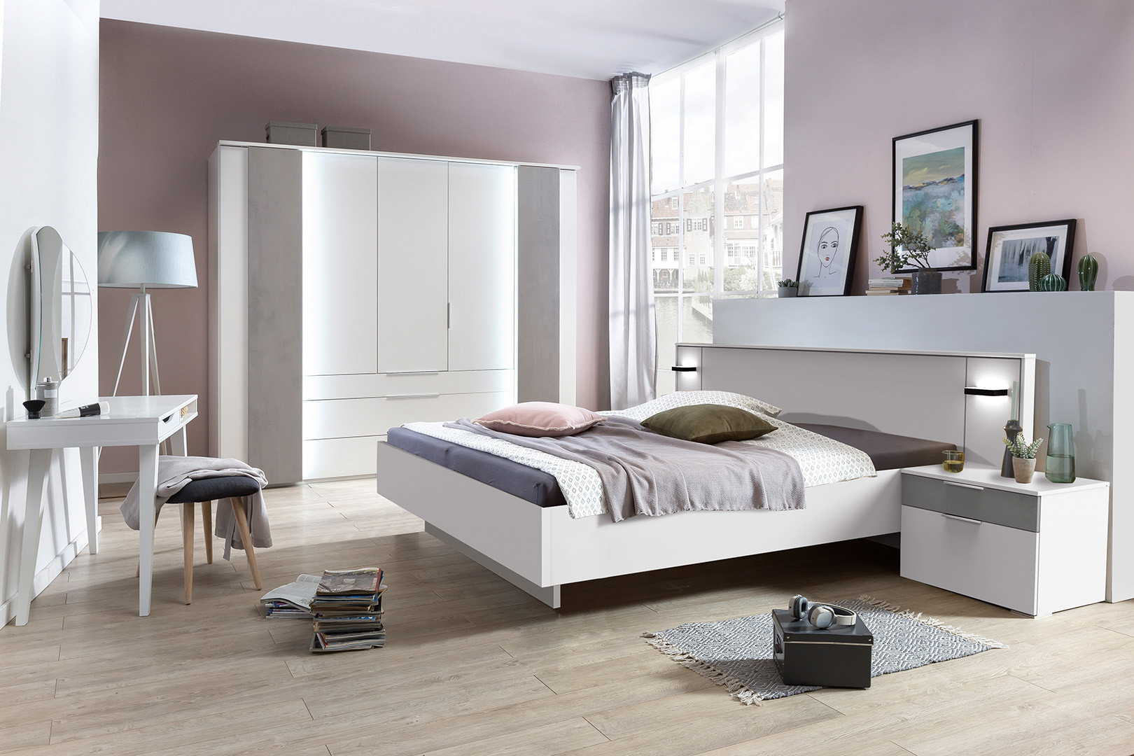 | Remarque | Lit réglable en hauteur - éclairage lit inclus - éclairage armoire non vendu - coiffeuse vendue séparément |