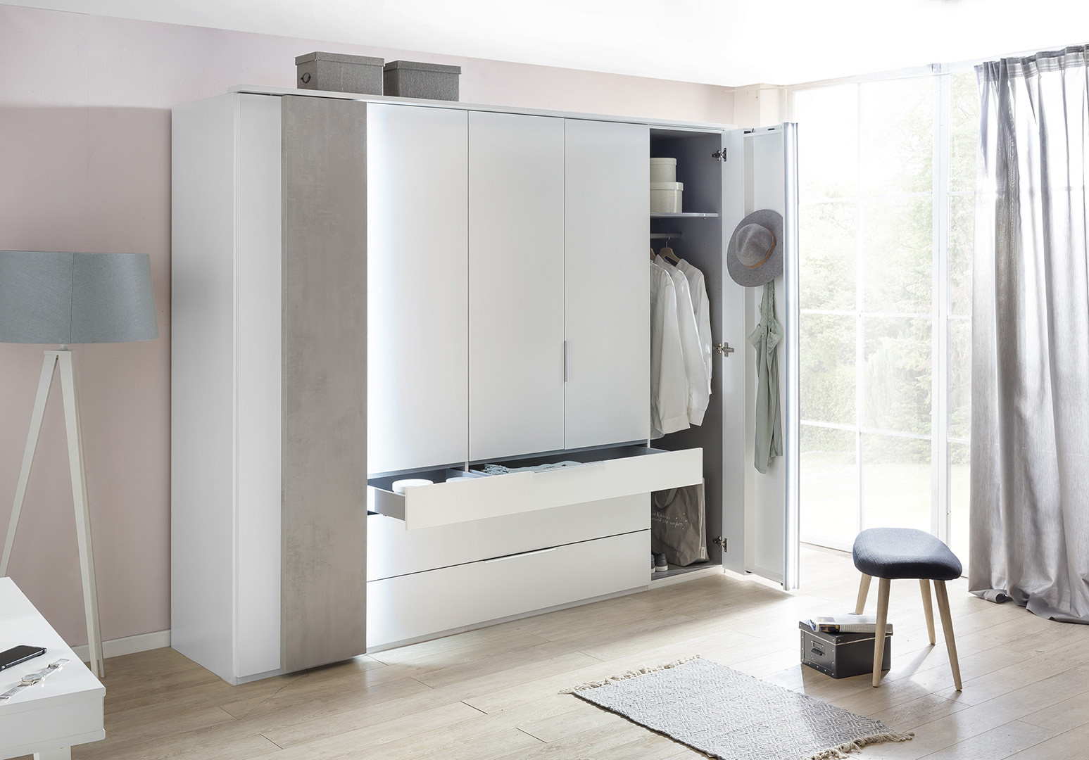 | Coloris | Chêne/gris clair, blanc/gris clair ou chêne/gris acier |