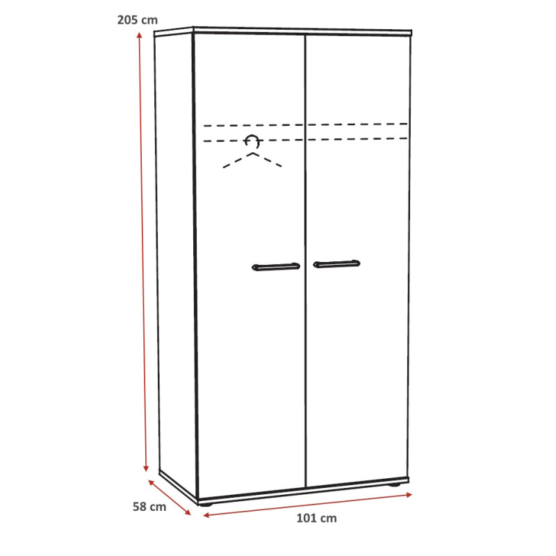 Armoire : L 101 x H 205 x P 58 cm