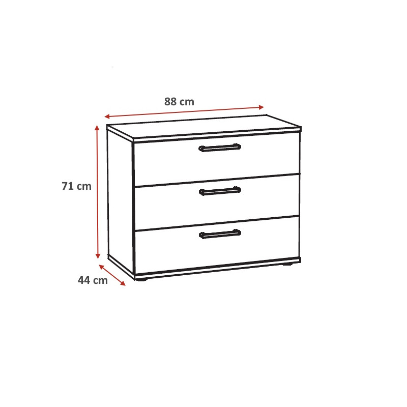 | Commode contemporaine 3 tiroirs chêne clair Lolita | | Longueur: 88 cm Hauteur: 71 cm Profondeur: 44 cm | En stock 1 à 2 semaines | 242 € 25 | ||