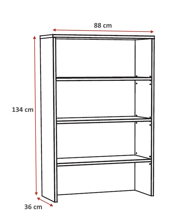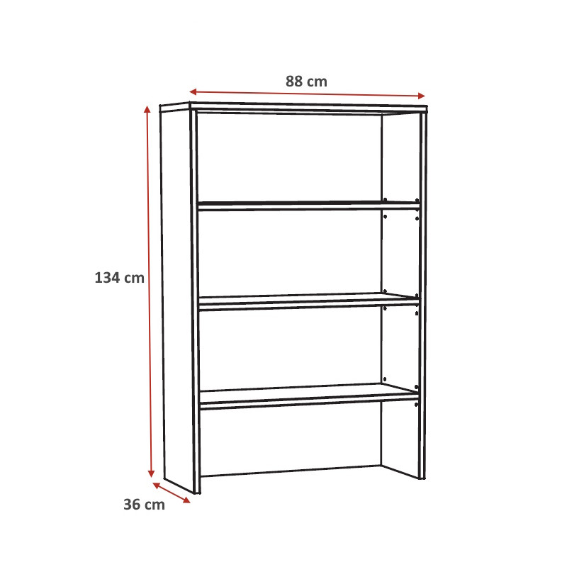Bibliothèque : L 88 x H 205 x P 36 cm