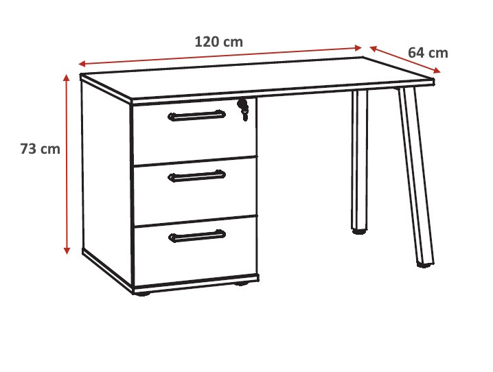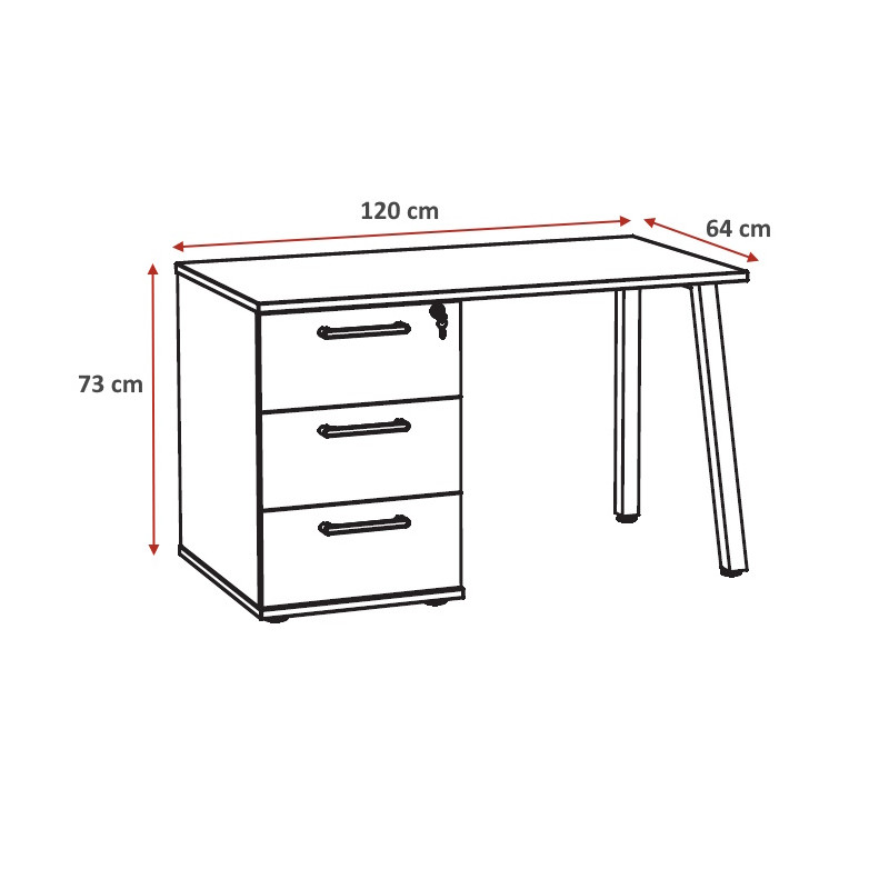 Bureau : L 120 x H 73 x P 64 cm