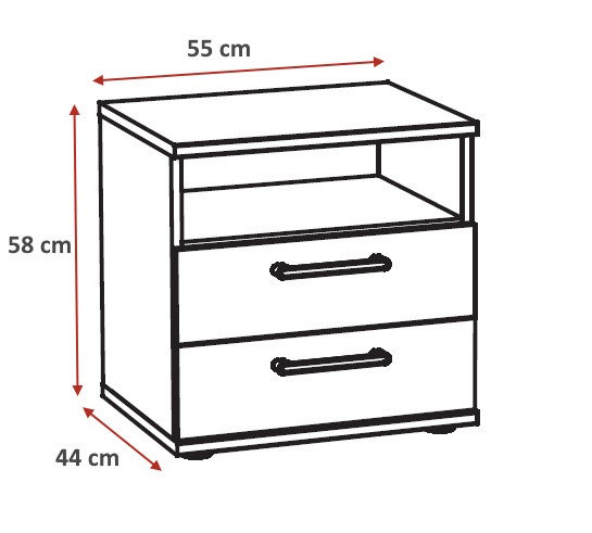 Chevet : L 55 x H 58 x P 44 cm