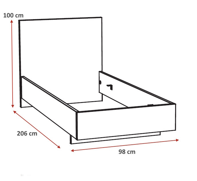 Lit : L 98 x H 100 x P 206 cm