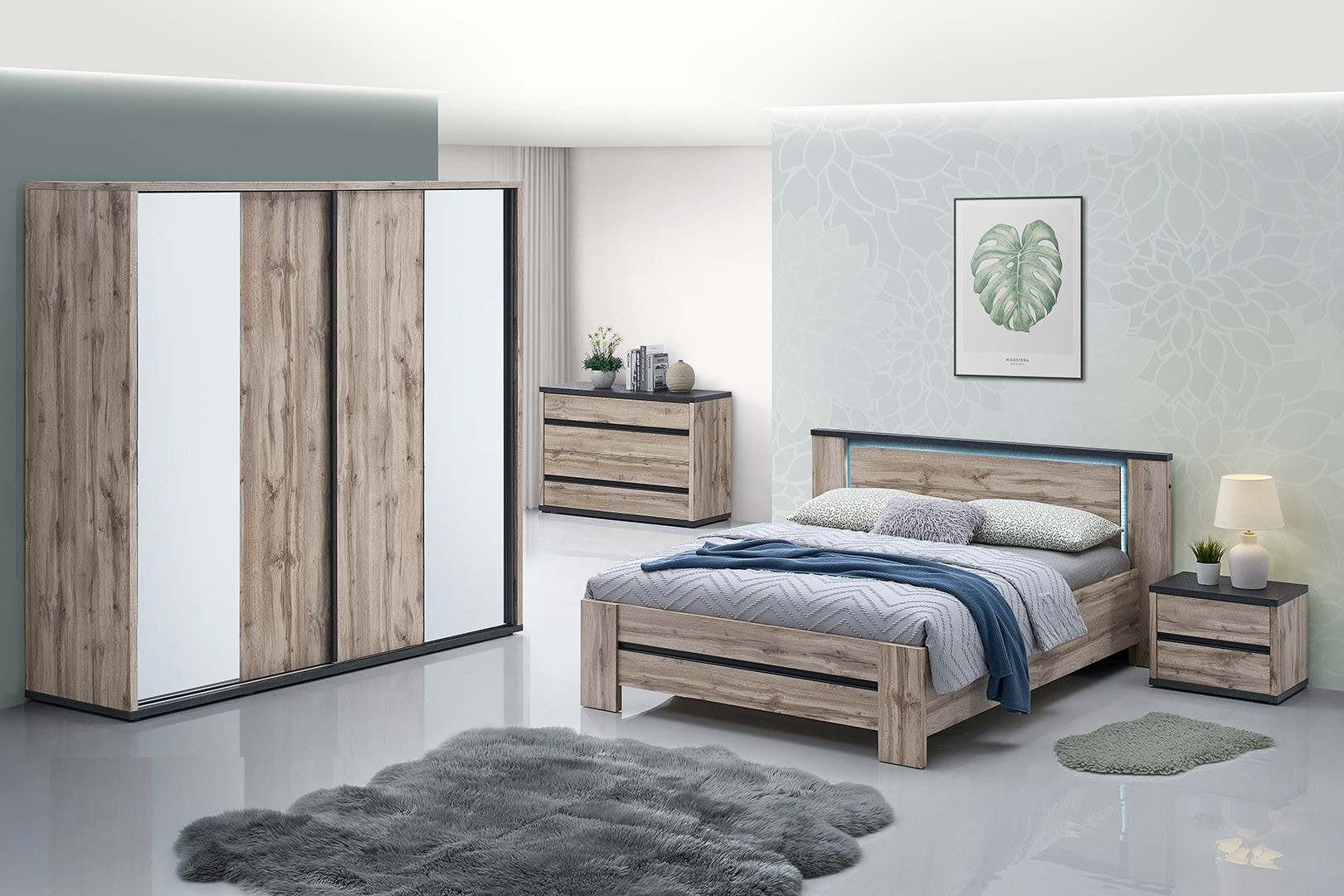 | Chambre adulte complète contemporaine chêne canada Elza | | Dimension de couchage: 140x200, 160x200 ou 180x200 cm | En stock 1 à 2 semaines | 1733 € 75 | ||