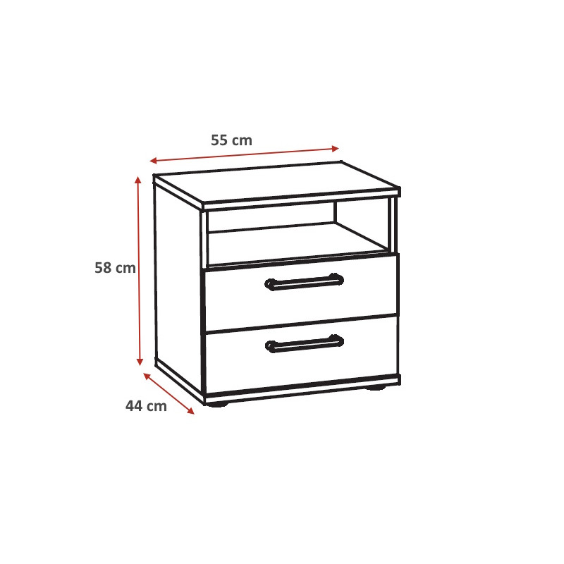 La qualité de fabrication du chevet Lolita repose sur l'utilisation de panneaux de particules mélaminés de première qualité, disponibles en épaisseurs de 18, 22 et 28 mm selon les différentes parties du meuble. Cette conception robuste garantit une durabilité exceptionnelle et une résistance à l'usure quotidienne. Les poignées en métal ajoutent une note contemporaine et facilitent l'ouverture des deux tiroirs spacieux, offrant ainsi un rangement optimal pour vos effets personnels, livres de chevet, lunettes ou autres accessoires indispensables. Ce table de chevet pratique devient rapidement un élément essentiel de votre quotidien nocturne.