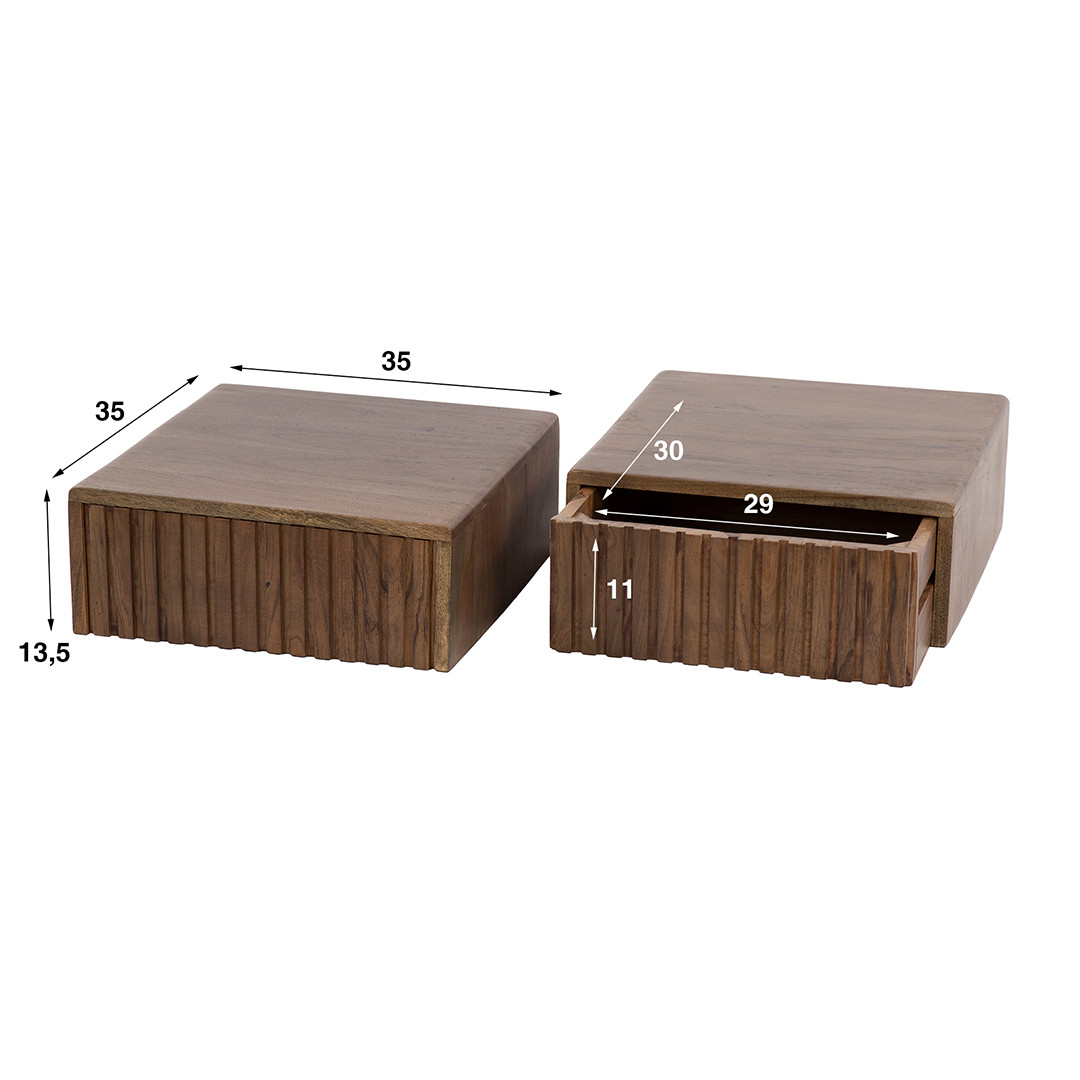 Chevet suspendu style nature H 27 cm en acacia massif brun Carvie | ![]() | Longueur: 35 cm Hauteur: 27 cm Profondeur: 35 cm | En stock 48 à 72h | 119 € 99 | ||