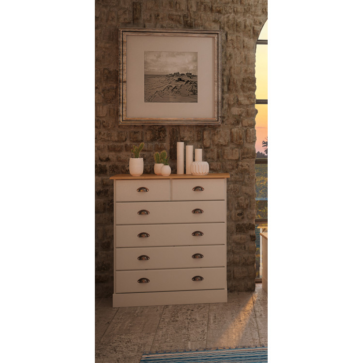 Ce qui la rend encore plus irrésistible ? Ses six tiroirs spacieux ! Grâce à ce chiffonnier, fini les vêtements qui débordent ou les accessoires qui traînent. Tout trouve sa place, et reste accessible d’un simple geste. Les tiroirs glissent facilement, et rien n’a été laissé au hasard côté esthétique. La finition blanche, lumineuse et apaisante, s’accorde parfaitement avec une décoration naturelle, zen ou même plus moderne. Son design discret, sans fioritures, s’adapte sans effort à tous les styles, du classique au contemporain — un vrai caméléon déco qui a du style !