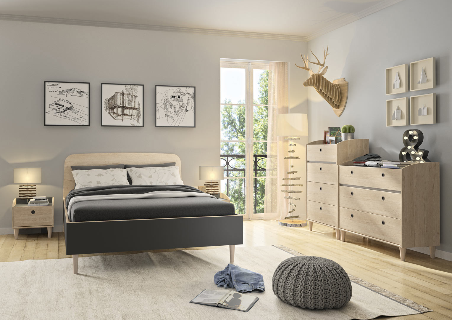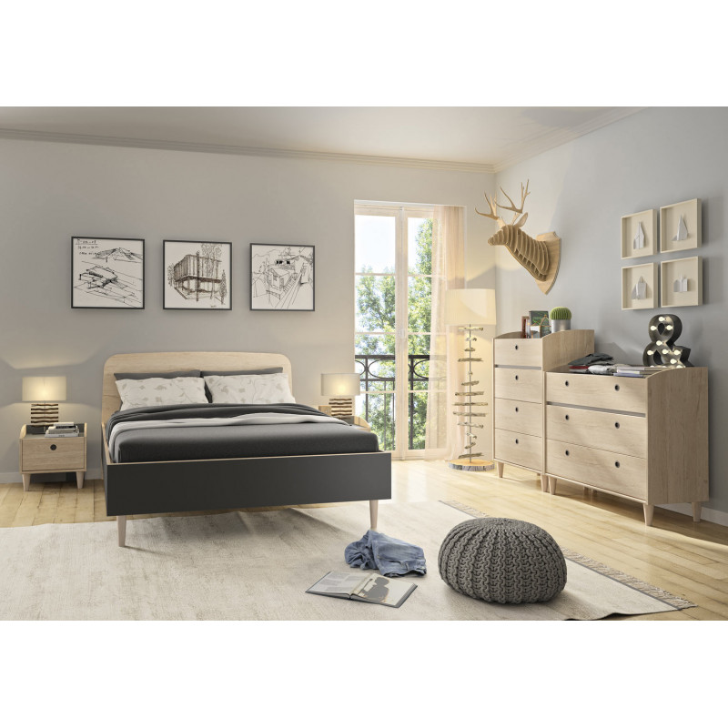 | Matière | Panneaux de particules revêtus de papier décor châtaigier naturel et mélamine gris anthracite - Chants ABS - poignées en ABS noir |